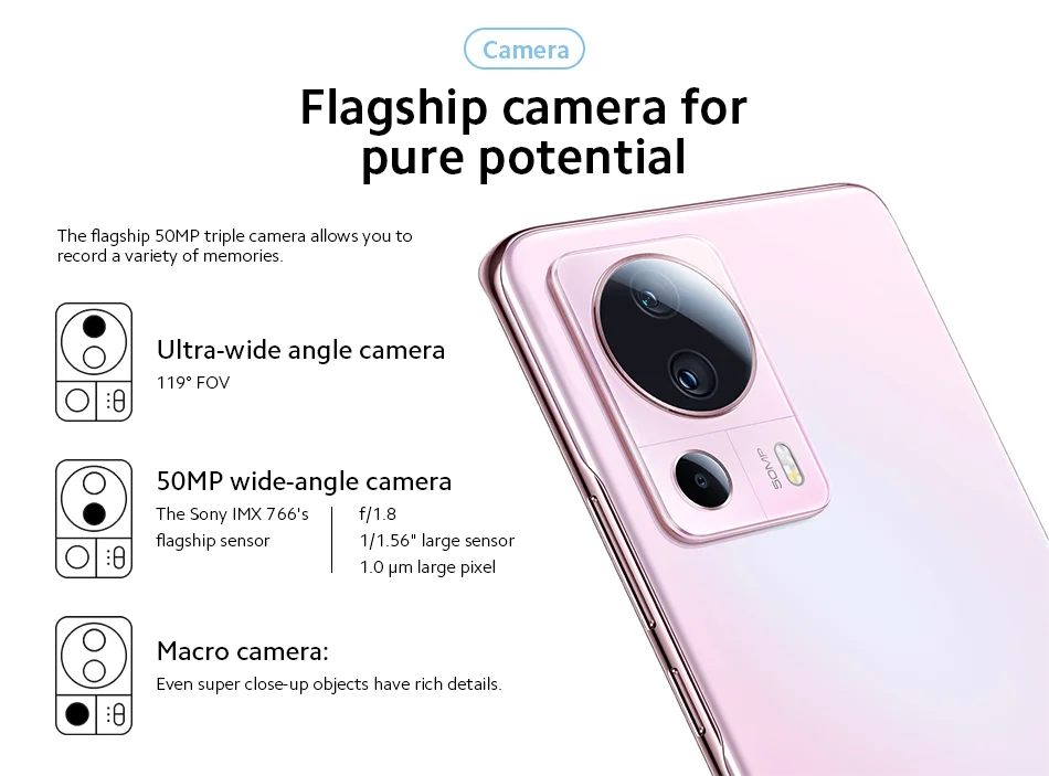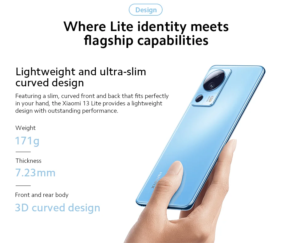 Xiaomi 13 Lite, Snapdragon 7 Gen 1, 6.55" FHD+ AMOLED Display, 50MP Wide-angle Camera