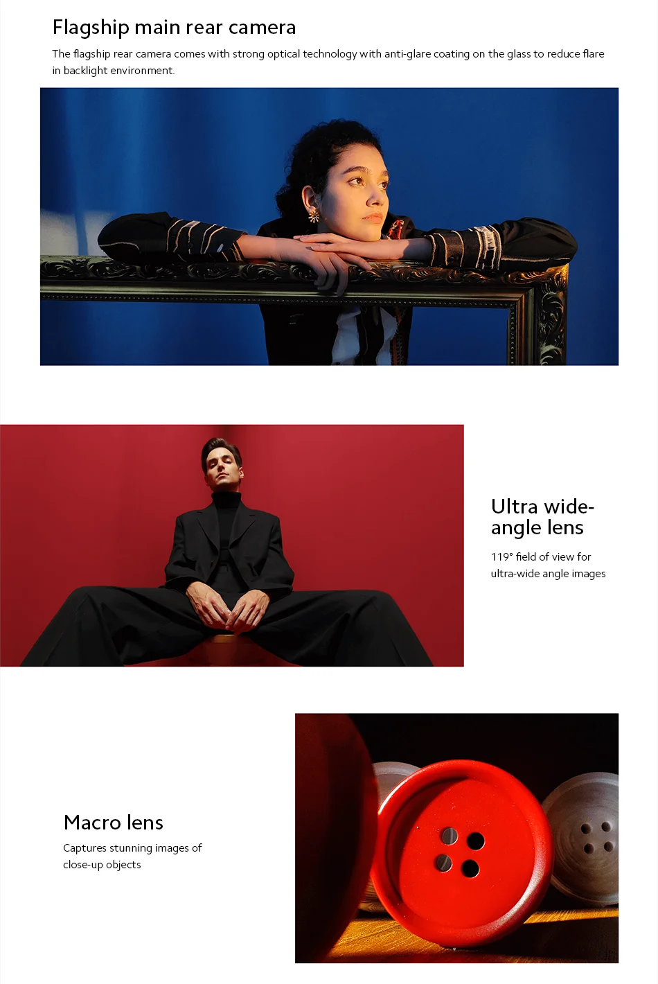 Camera---------- 50M+8MP+2MP Triple Camera,32MP Ultra-wide Angle Front Camera+8MP Depth Sensor
