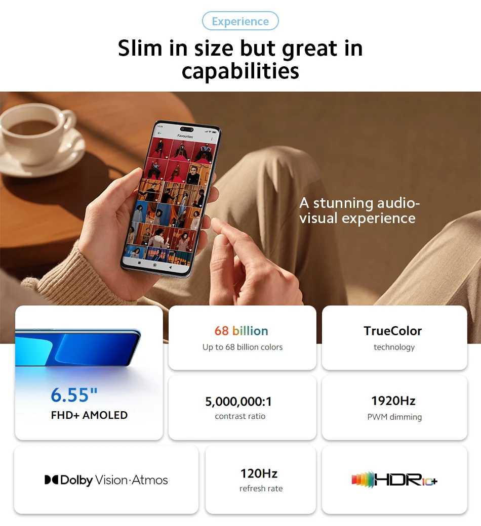 Screen----------- 6.55'' FHD+ AMOLED Display, 2400 x 1080 Resolution, 120Hz Screen Refresh Rate, 240Hz Touch Sampling Rate