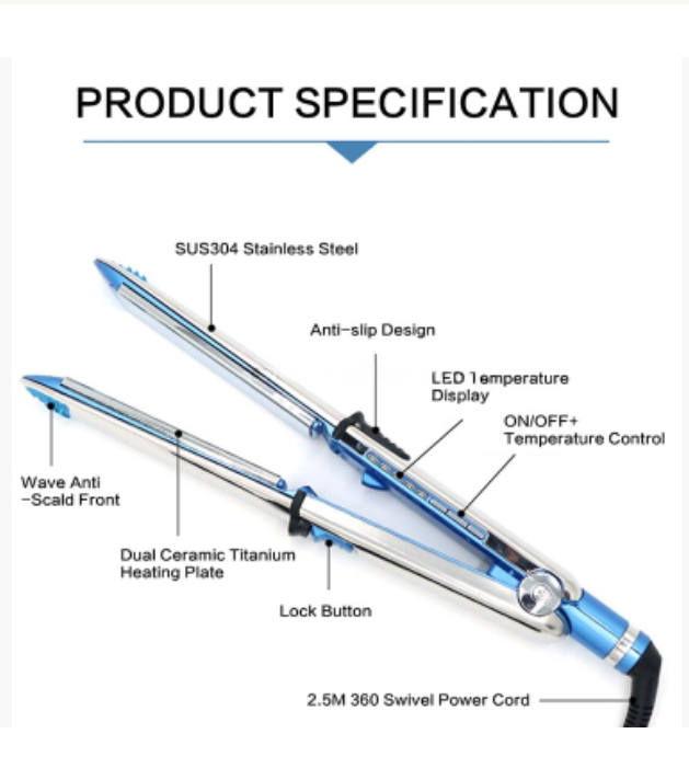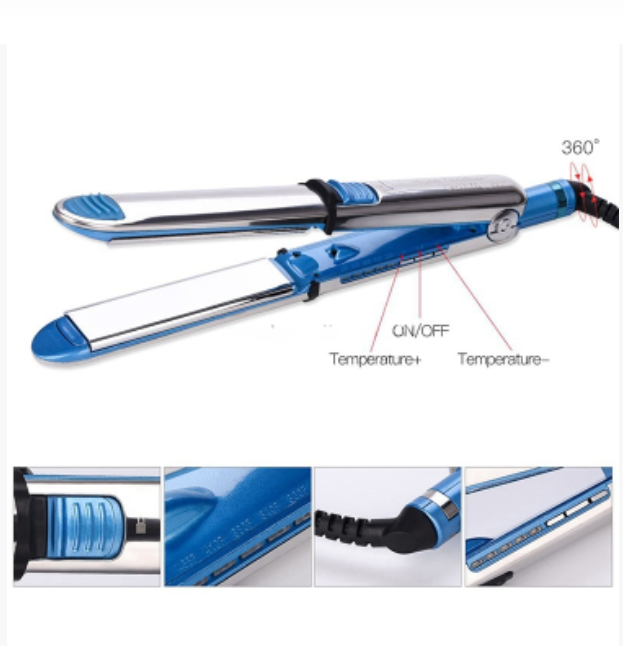2 in 1 Titanium Hair Straighter Curler Iron(Blue)