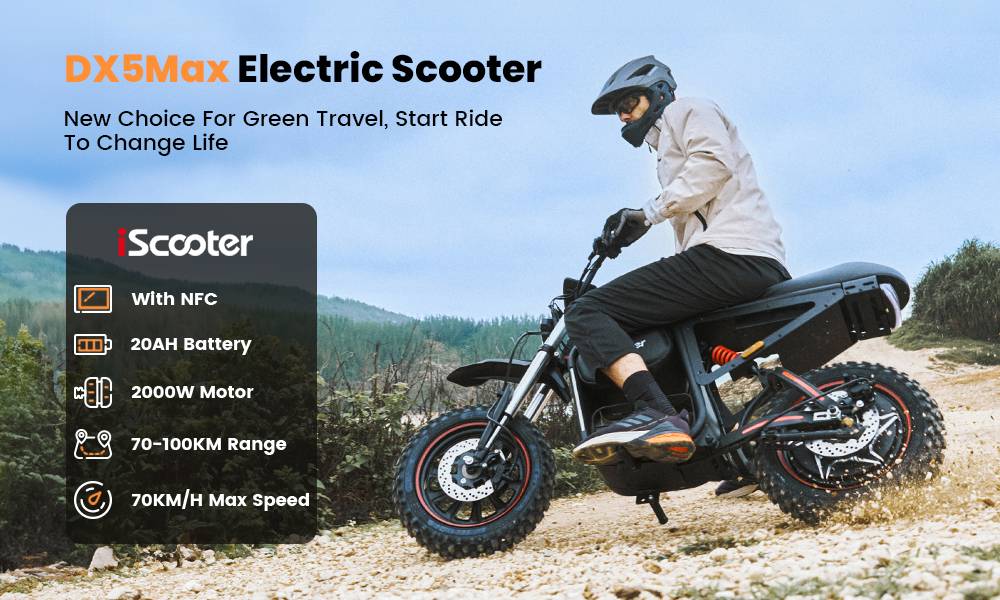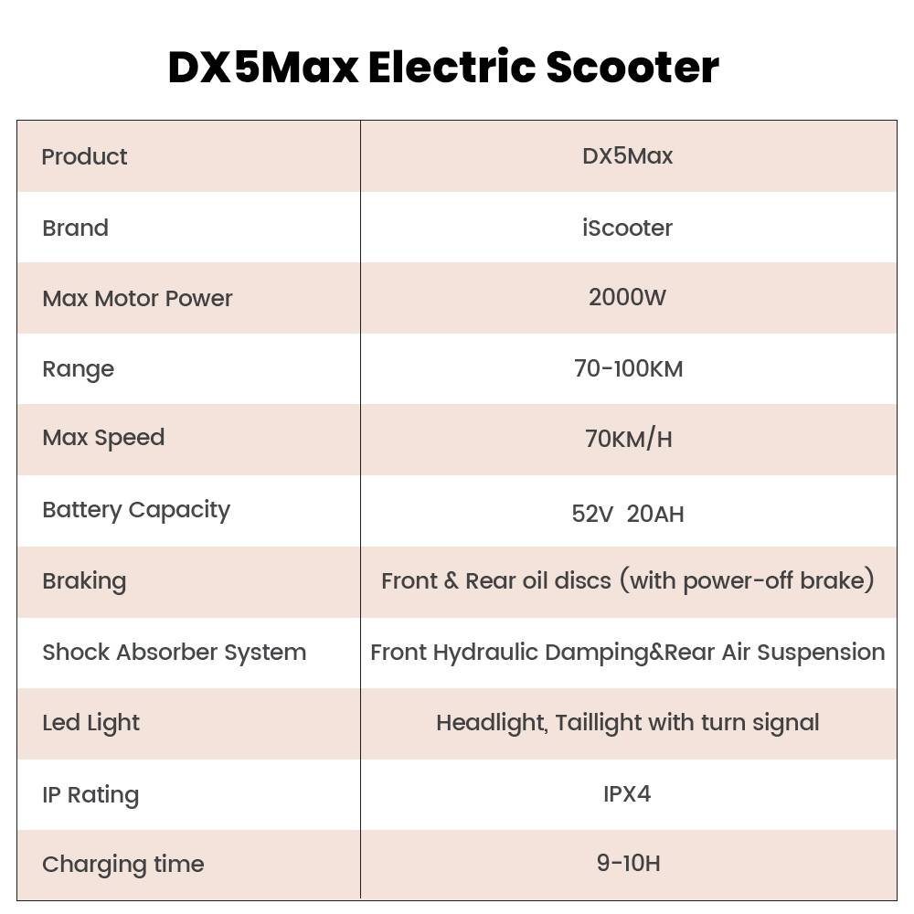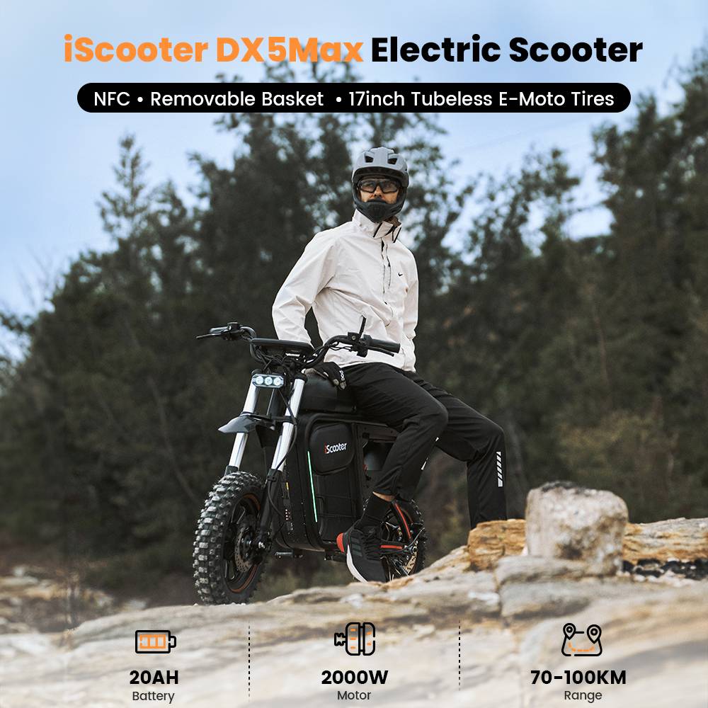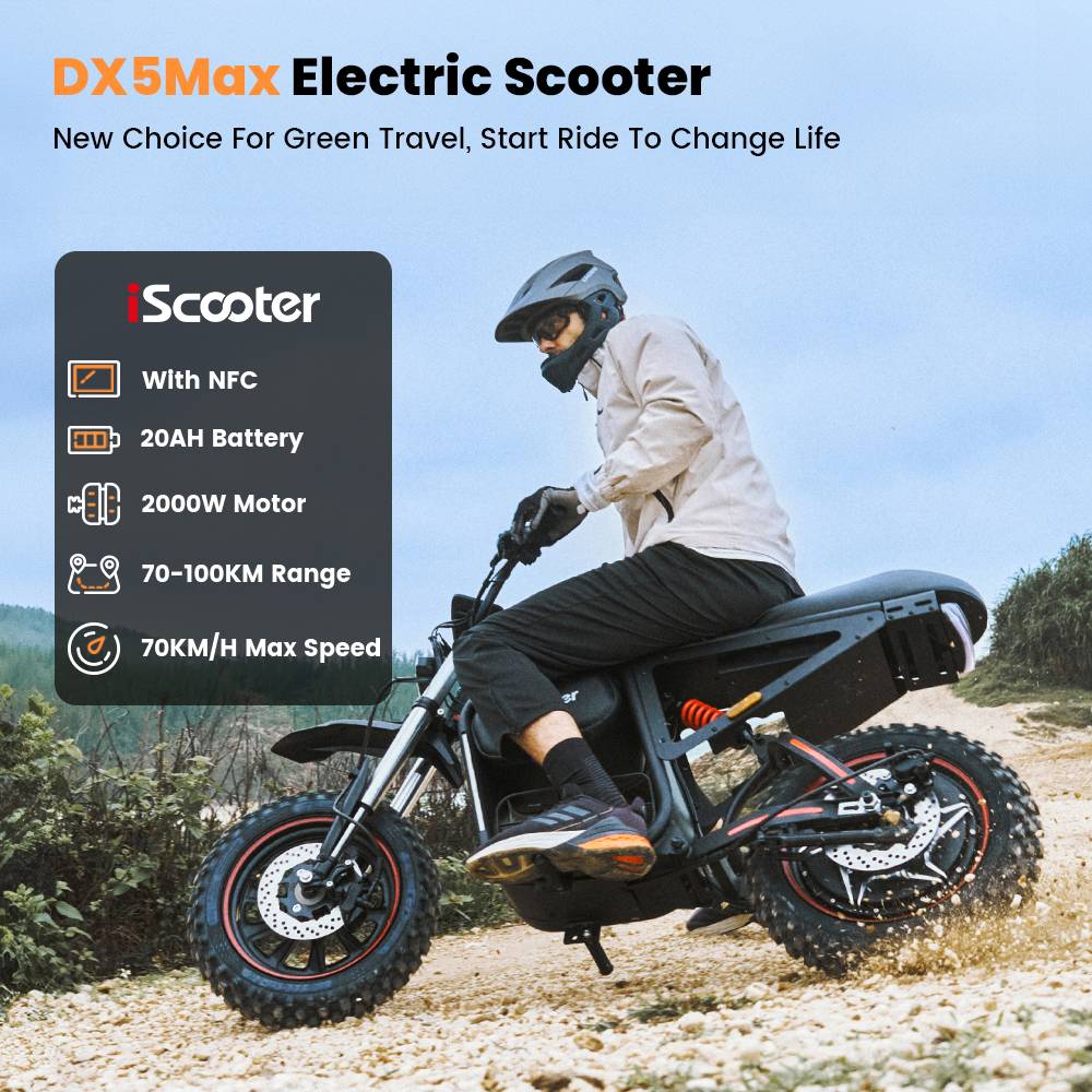 [2026 NWE] iScooter DX5 Max 17-inch Electric Motorcycle, 2000W Motor, 52V 20Ah Battery, 4-speed speed control,70km/h Top Speed (after unlocking), maximum range of 70–100 km, maximum load capacity of 150KG