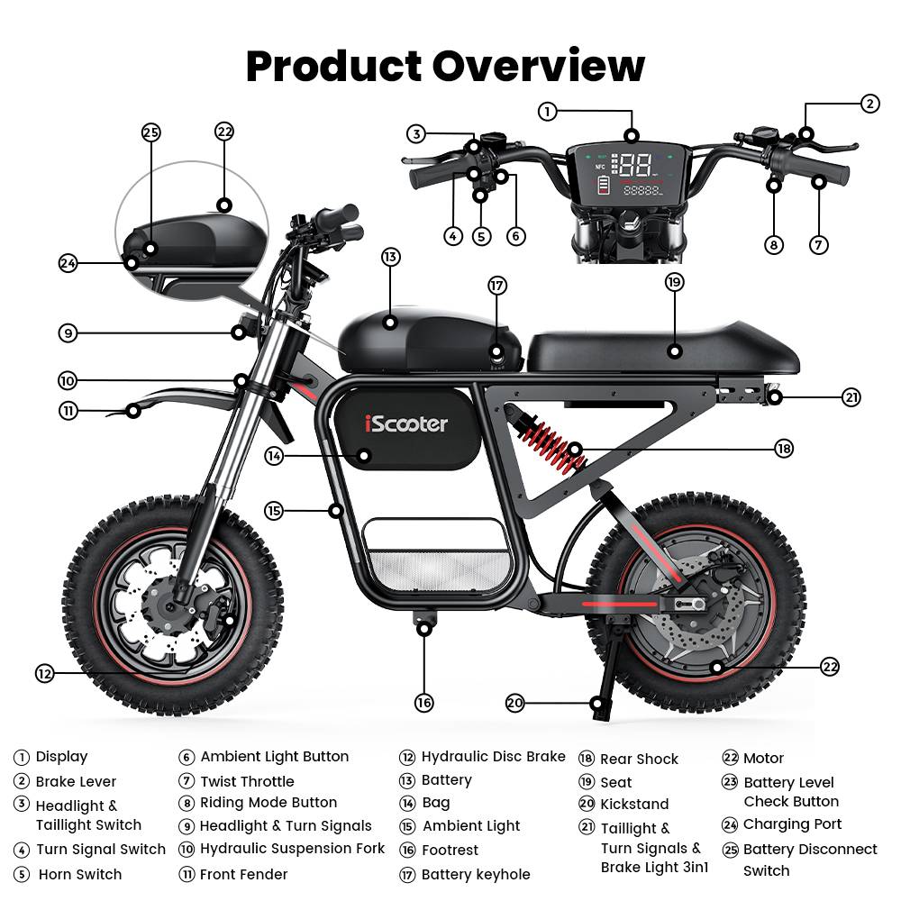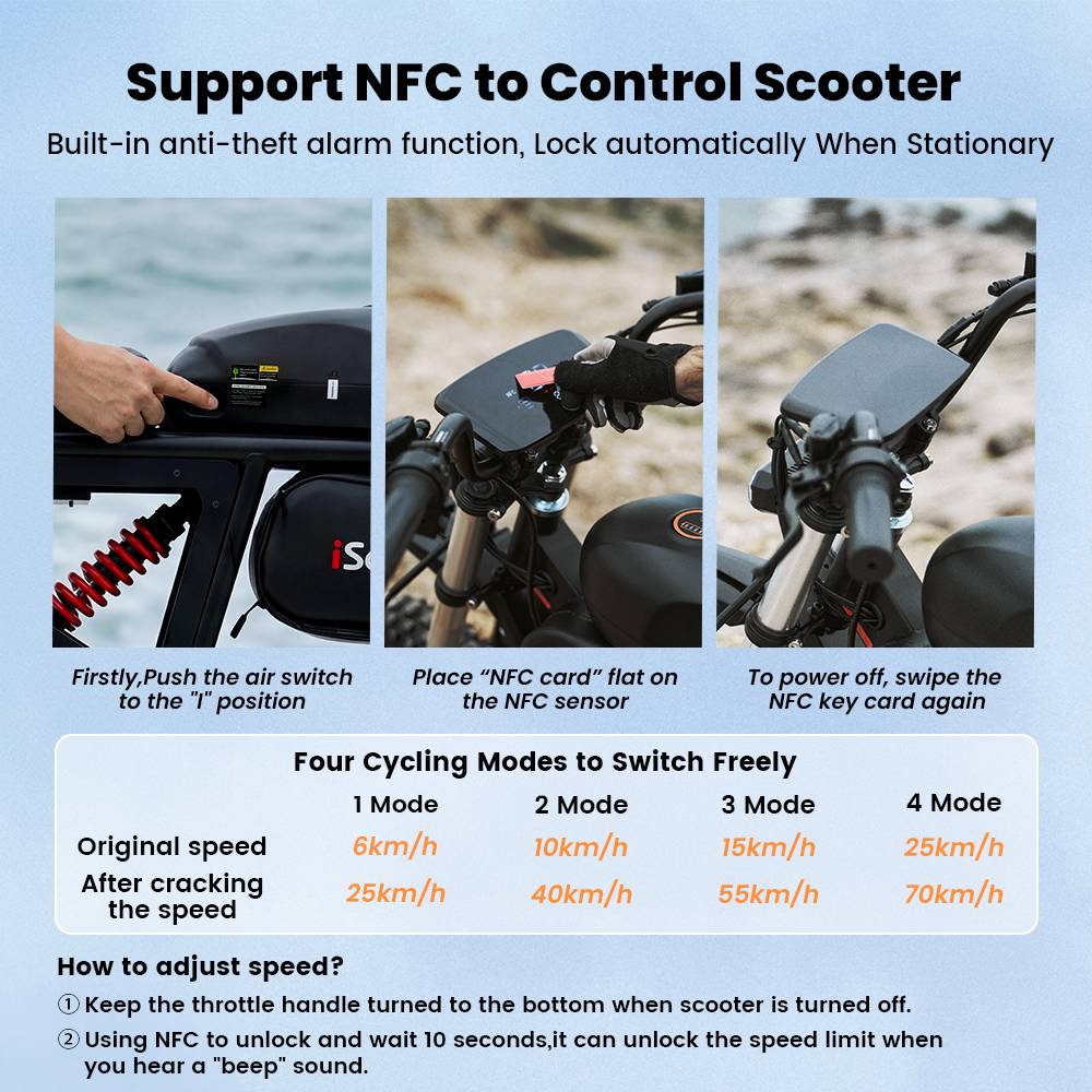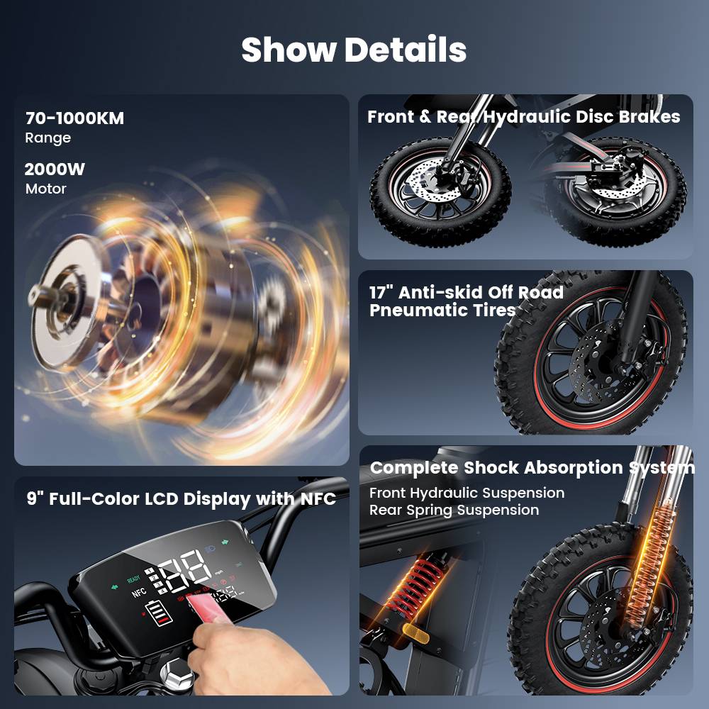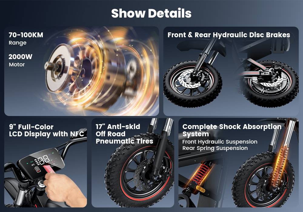 [2026 NWE] iScooter DX5 Max 17-inch Electric Motorcycle, 2000W Motor, 52V 20Ah Battery, 4-speed speed control,70km/h Top Speed (after unlocking), maximum range of 70–100 km, maximum load capacity of 150KG