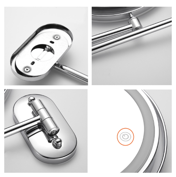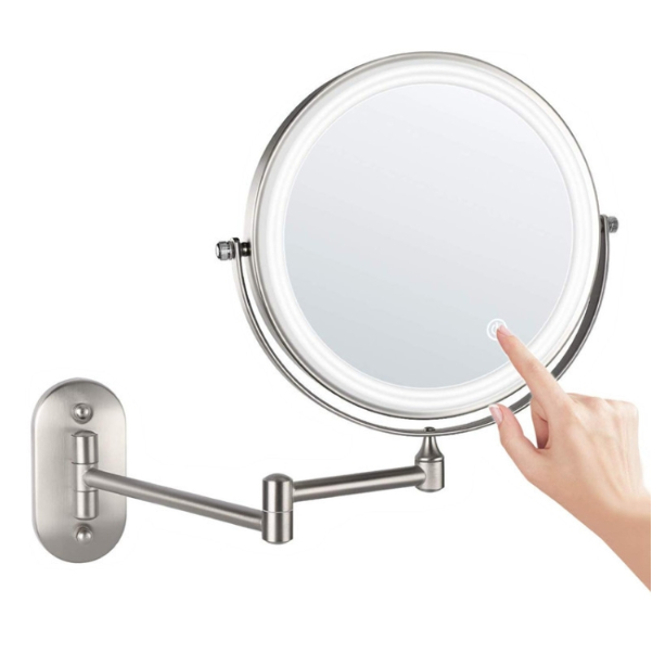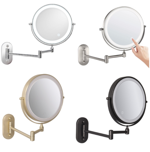 8 Inch Wall-Mounted Double-Sided Makeup Mirror LED Three-Tone Light Bathroom Mirror