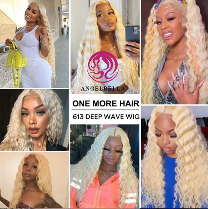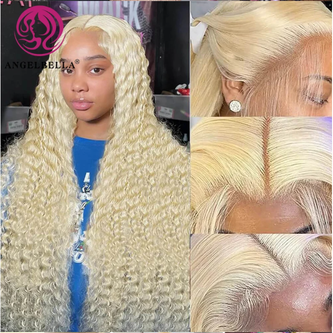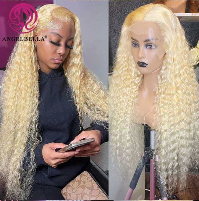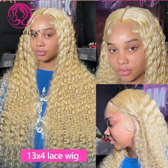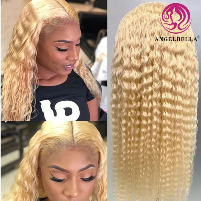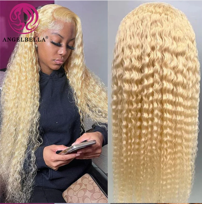 AngelBella Hd 13x6 Full Lace Frontal Wig 200 Density Blonde Deep Wave Wig Raw Indian Temple Hair Wig