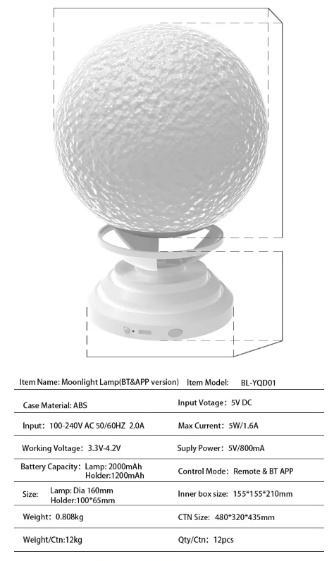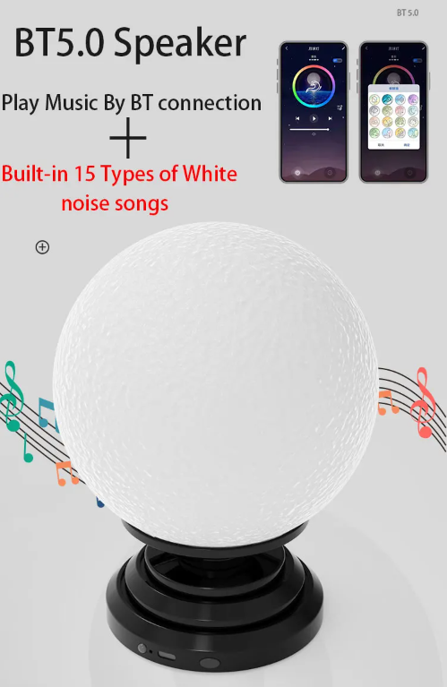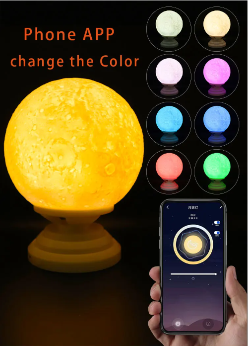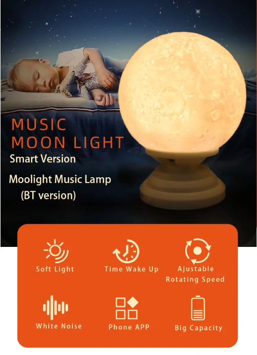 APP operation rotating changing color kids night light moon,led moon night light with Music Speaker