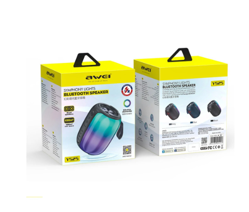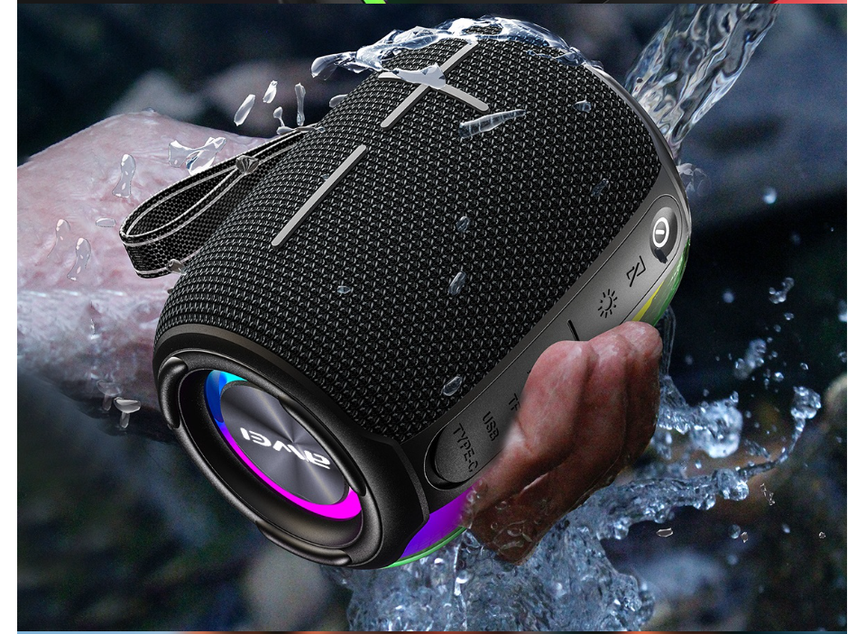 AWEI Y525 bluetooth Speaker Wireless LED Colorful Light 1800mAh IPX6 Waterproof TWS TF Card U Disk AUX Outdoor Portable Speaker - Black