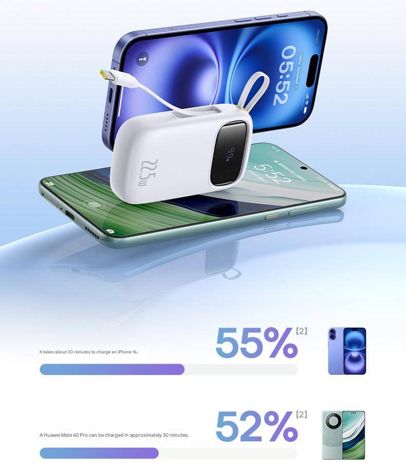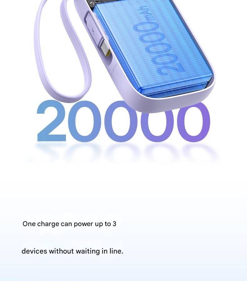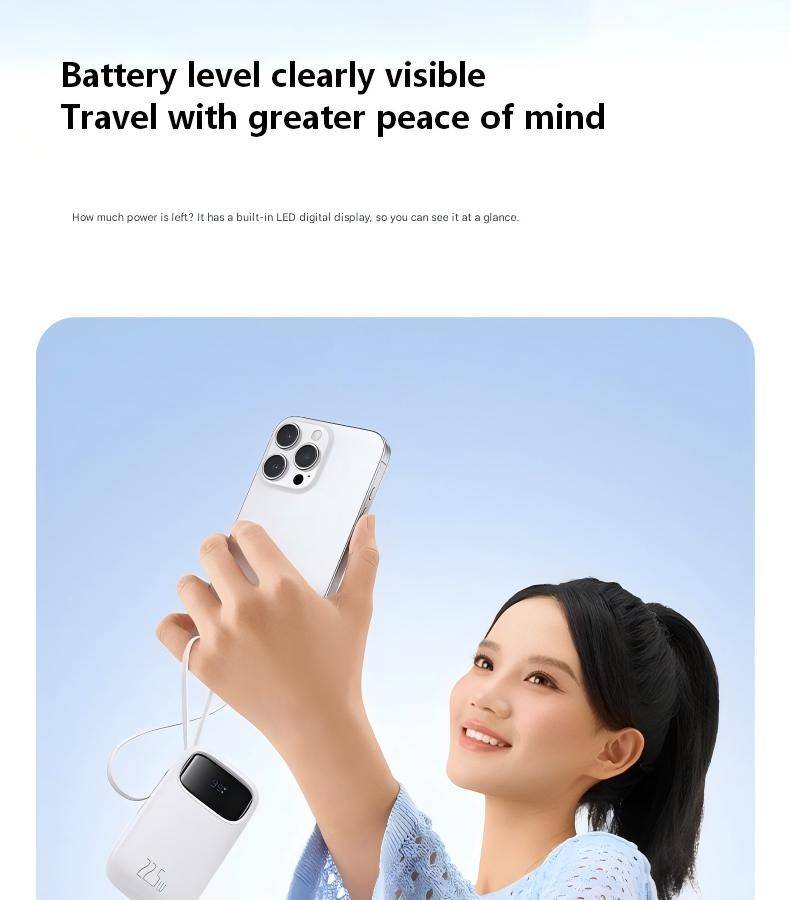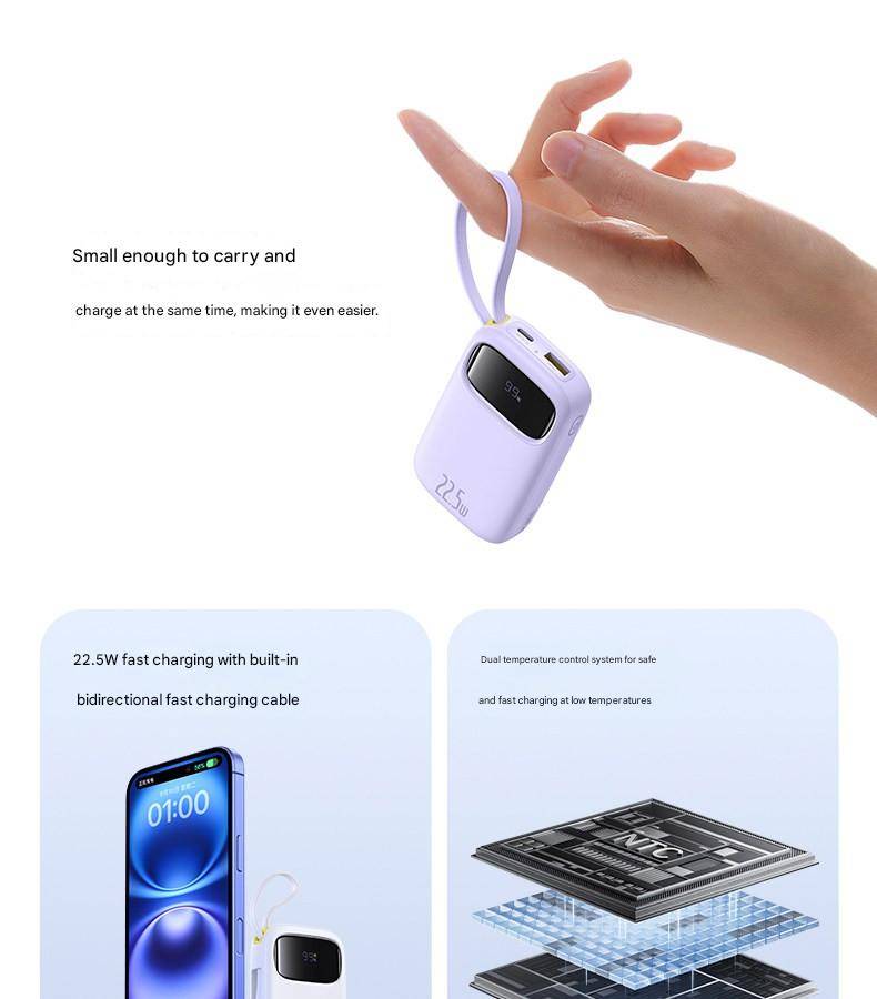 Baseus 22.5W 10000mAh 20000mAh Power Bank Built-In Retractable USB-C & Lightning Cable