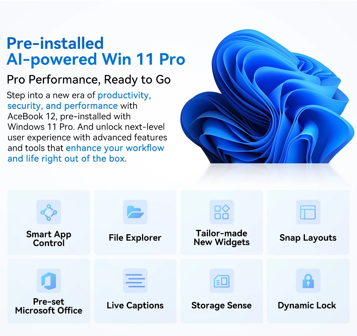 Blackview AceBook 12 Win 11 Pro Laptop 16'' 1920*1200 Display, Intel I5-1030NG7 Notebook, 16GB 512GB, 5000mAh