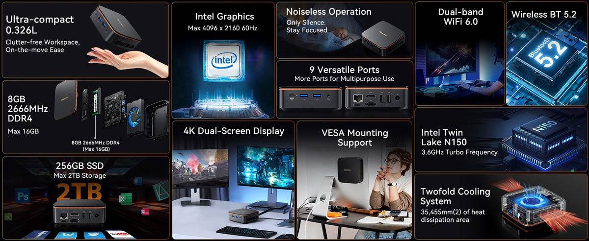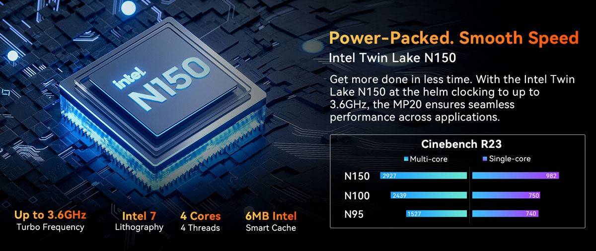Blackview MP20 Intel Twin Lake N150 3.60 GHz CPU Windows 11 Pro VESA Mount Support Mini PC
