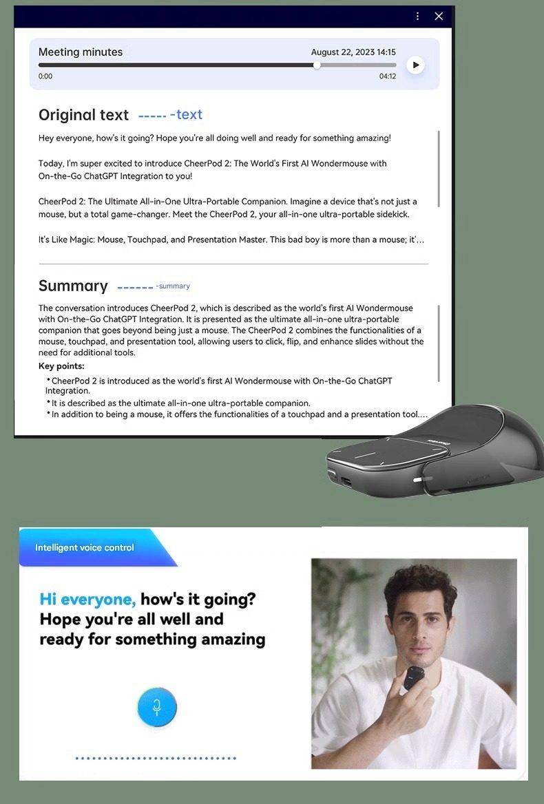 Cheerdots 2 Detachable Air Mouse Touchpad Pocket AI Recording ChatGPT Silent Wireless Mouse Business Office Mouse Gaming Mouse