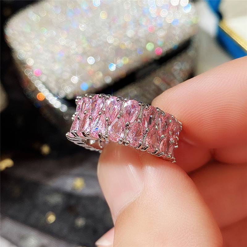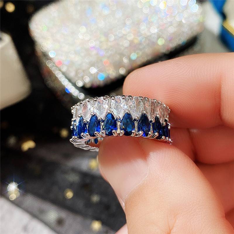 Deluxe double draining zirconium ring full of diamond couples ring