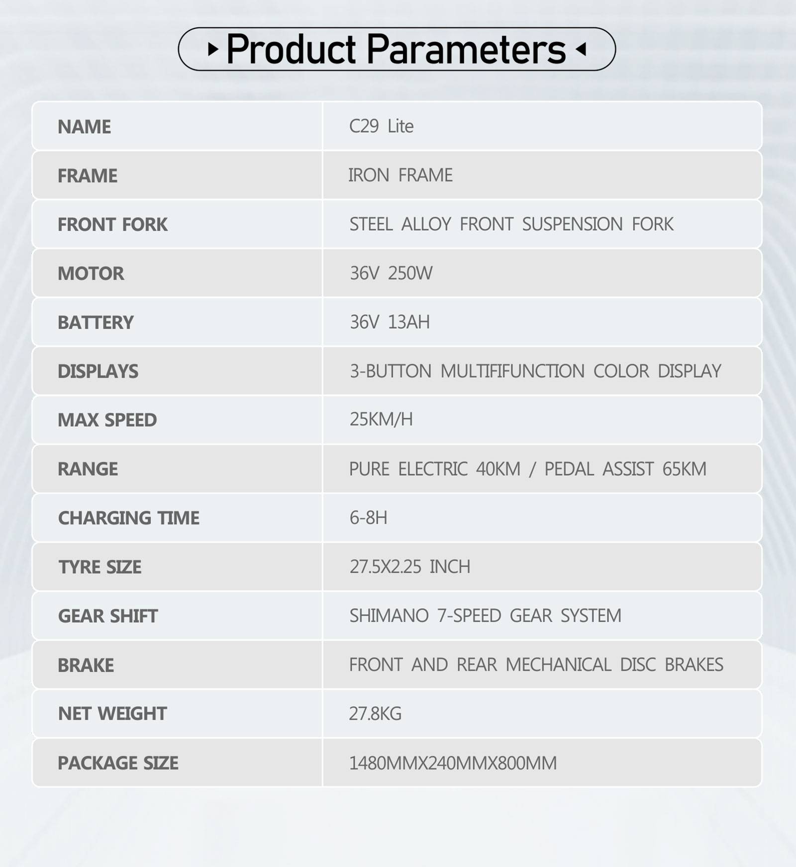 DUOTTS C29 Lite—Specifications