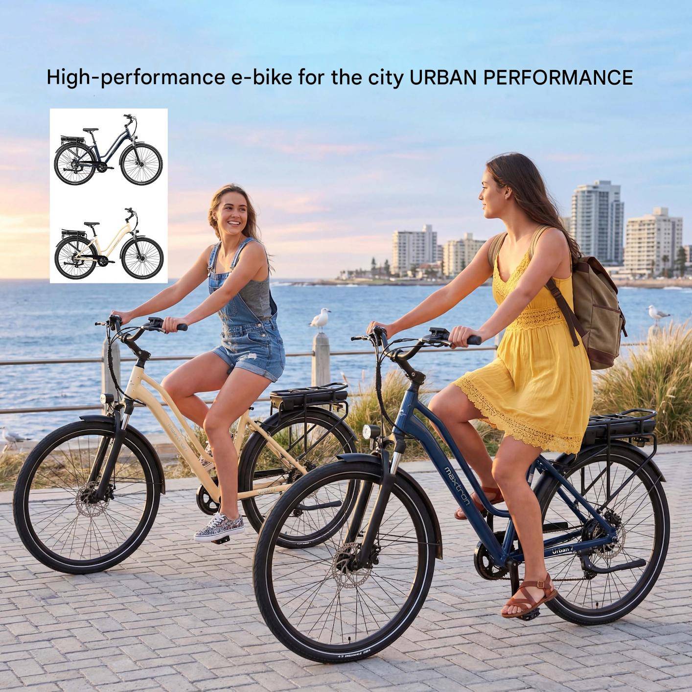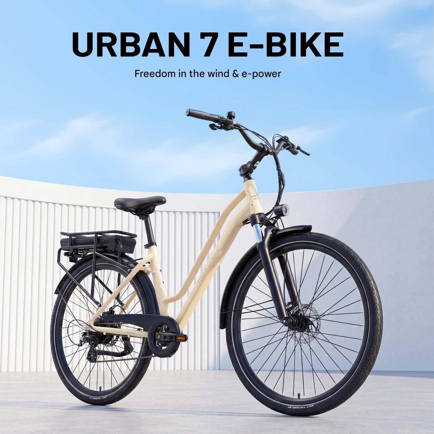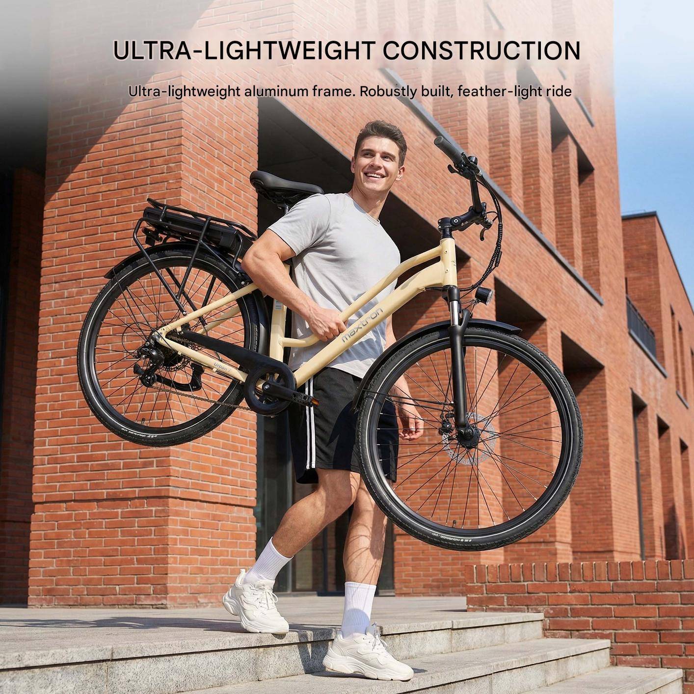Comfortable, low-step urban design The MAXTRON Urban 7 features a low-step aluminum frame, making it easy to mount and dismount. This practical design is ideal for urban commutes, daily errands, and weekend rides.