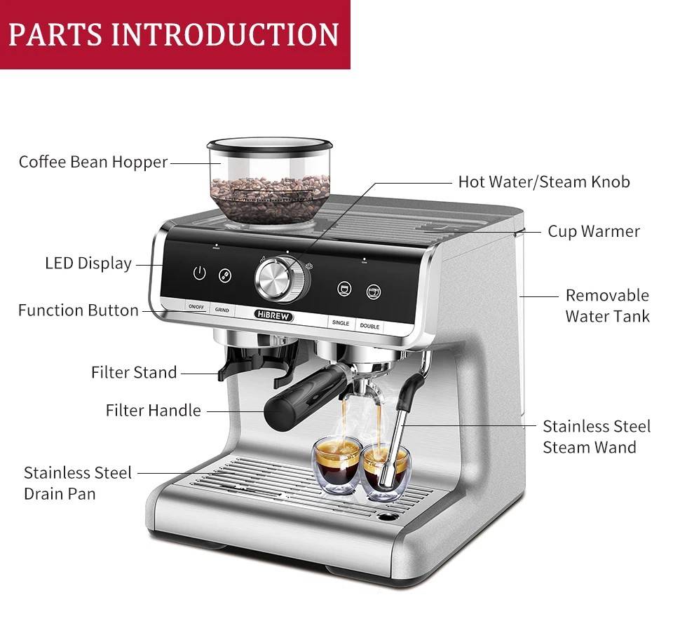 【EU Stock & Ships Immediately】HiBREW Barista Pro 20Bar Bean to Espresso,Cafetera Commercial Level Coffee Machine with Full Kit for Cafe Hotel Restaurant H7