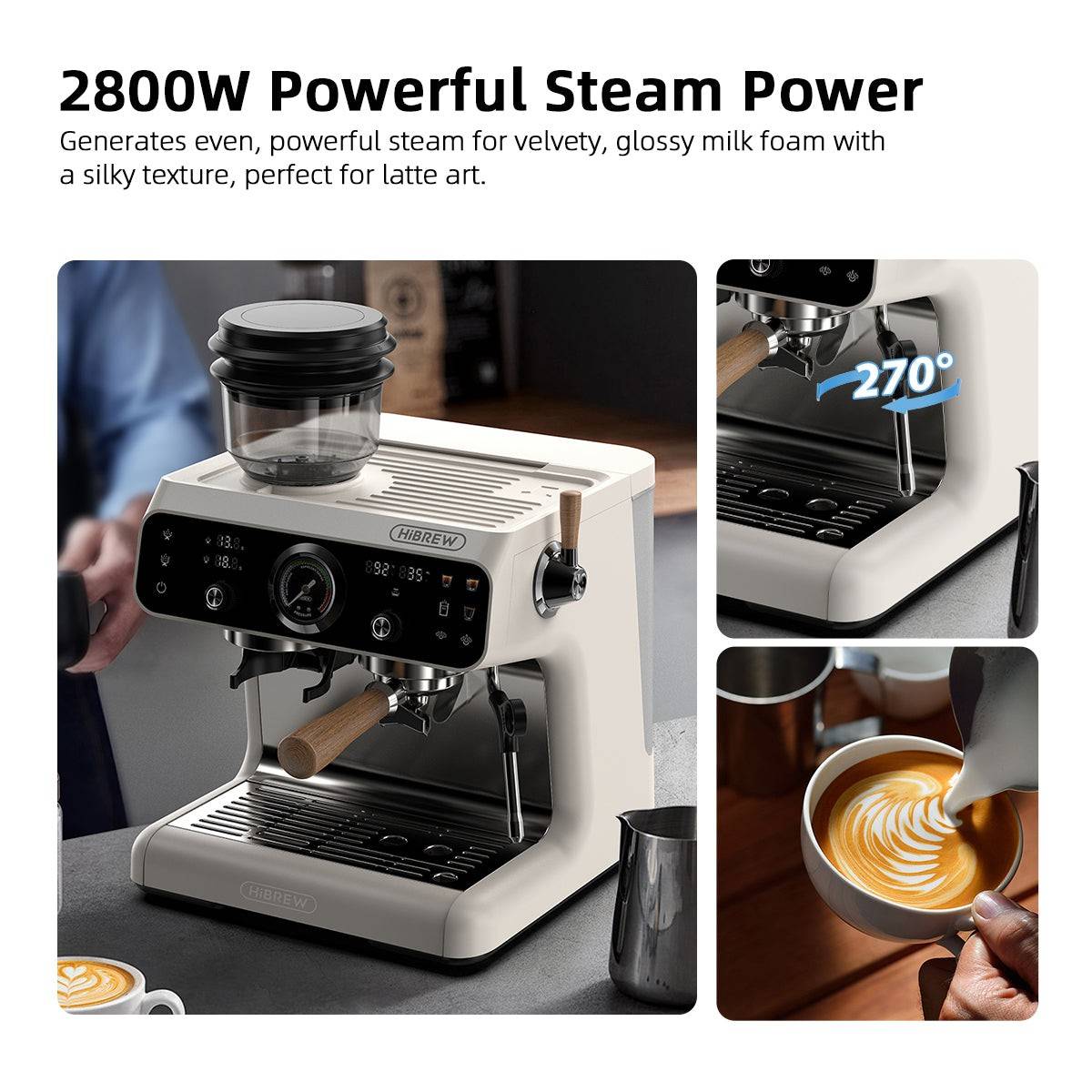 Unlock the secret to café-quality milk beverages right in your own kitchen. With a powerful 2800W steam generator, the HIBREW produces instant, dry, and incredibly powerful steam that transforms milk into a silky, glossy microfoam—perfect for pouring beautiful latte art.