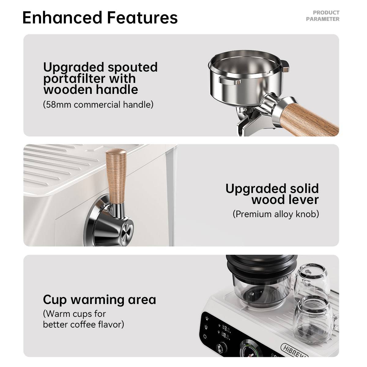 Designed for both beginners and seasoned coffee enthusiasts, the HiBREW H7B combines a high-quality built-in grinder, intuitive touchscreen, and advanced features like PID control, dual heating, pre-infusion, and customizable settings. This setup delivers cafe-quality espresso shots right at home.