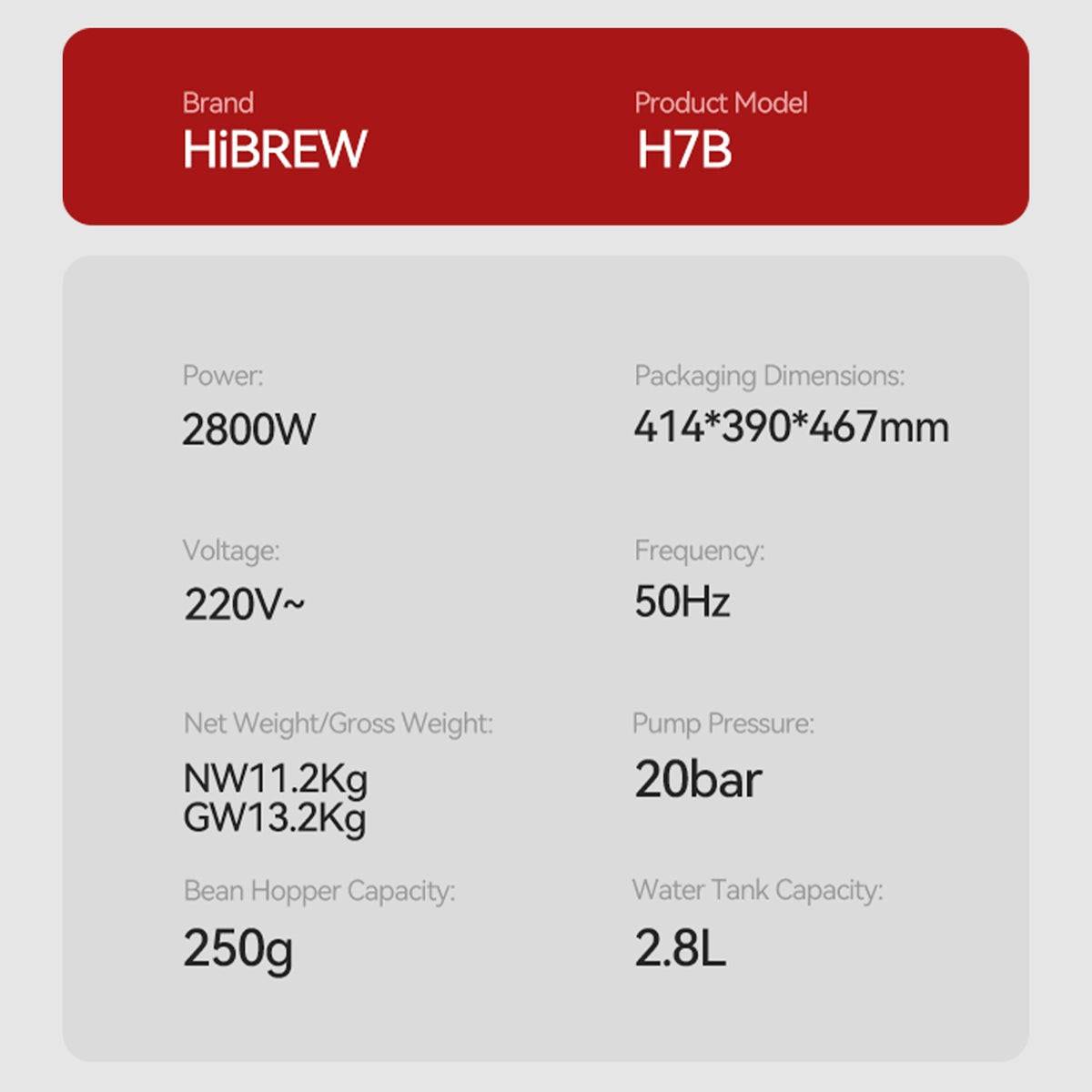 【EU Stock & Ships Immediately】HiBREW H7B Espresso Machine with Grinder