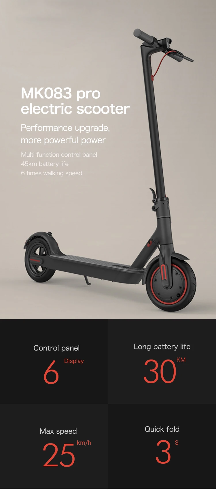The MK083PRO boasts a powerful 350W brushless motor that allows for a top speed of up to 25 km/h (15.5 mph). With its 7.5Ah lithium battery, this scooter has a remarkable range of up to 25 km (15.5 miles) on a single charge. The battery charges quickly and efficiently, taking just 3-4 hours to reach full capacity.