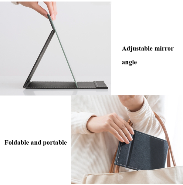 Folding Portable High-definition Makeup Mirror PU Leather Desktop Vanity Mirror,Size: Extra Large
