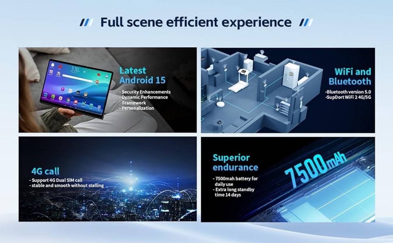 All-Day Power: • 7500mAh Battery – Binge-watch for 12+ hours • 4G Calling + WiFi 6 – Stay connected anywhere