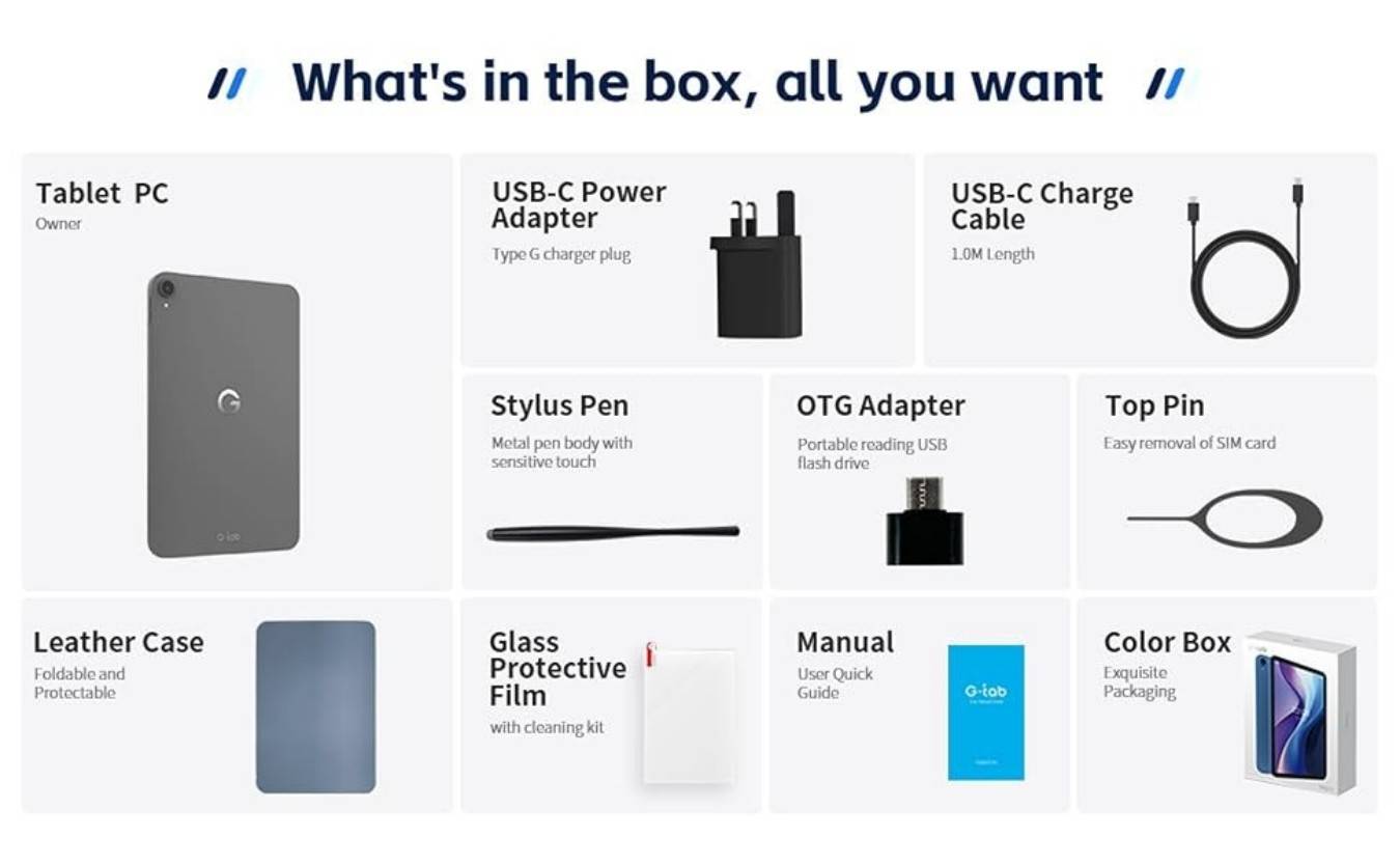 Premium Unboxing Experience – Everything You Need Comes with G-Tab PAD11