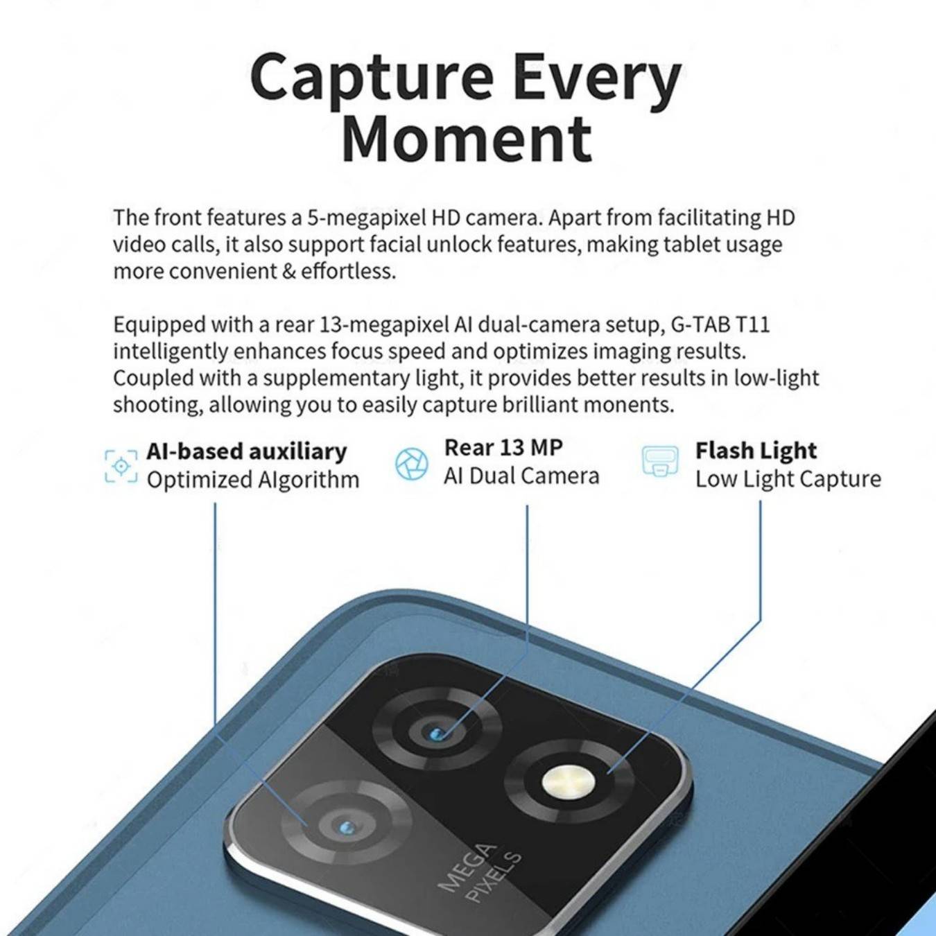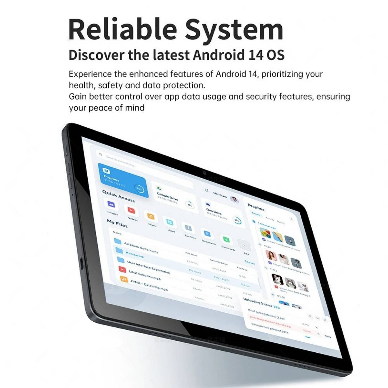 G-tab T11 Android 14 Tablet, 10.1 inch 1280*800 IPS Screen, Unisoc T606 8 Core Max 1.6GHz, 8GB RAM (4GB +4GB Expansion) 128GB ROM, 2.4/5GHz WiFi Bluetooth 5.0, 6580mAh Battery, 8MP+13MP Camera, Dual 4G LTE, Widevine L1