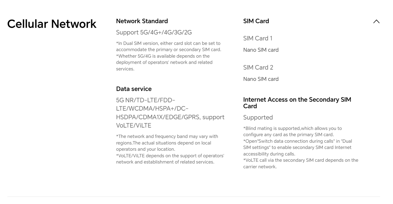5G bands: 1, 3, 5, 8, 28, 38, 41, 77, 78 SA/NSA
