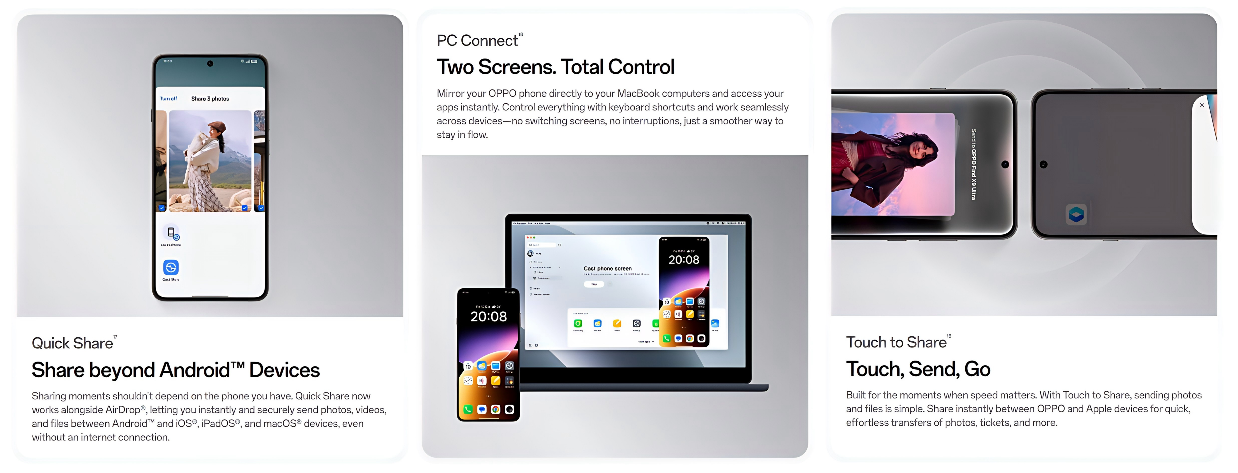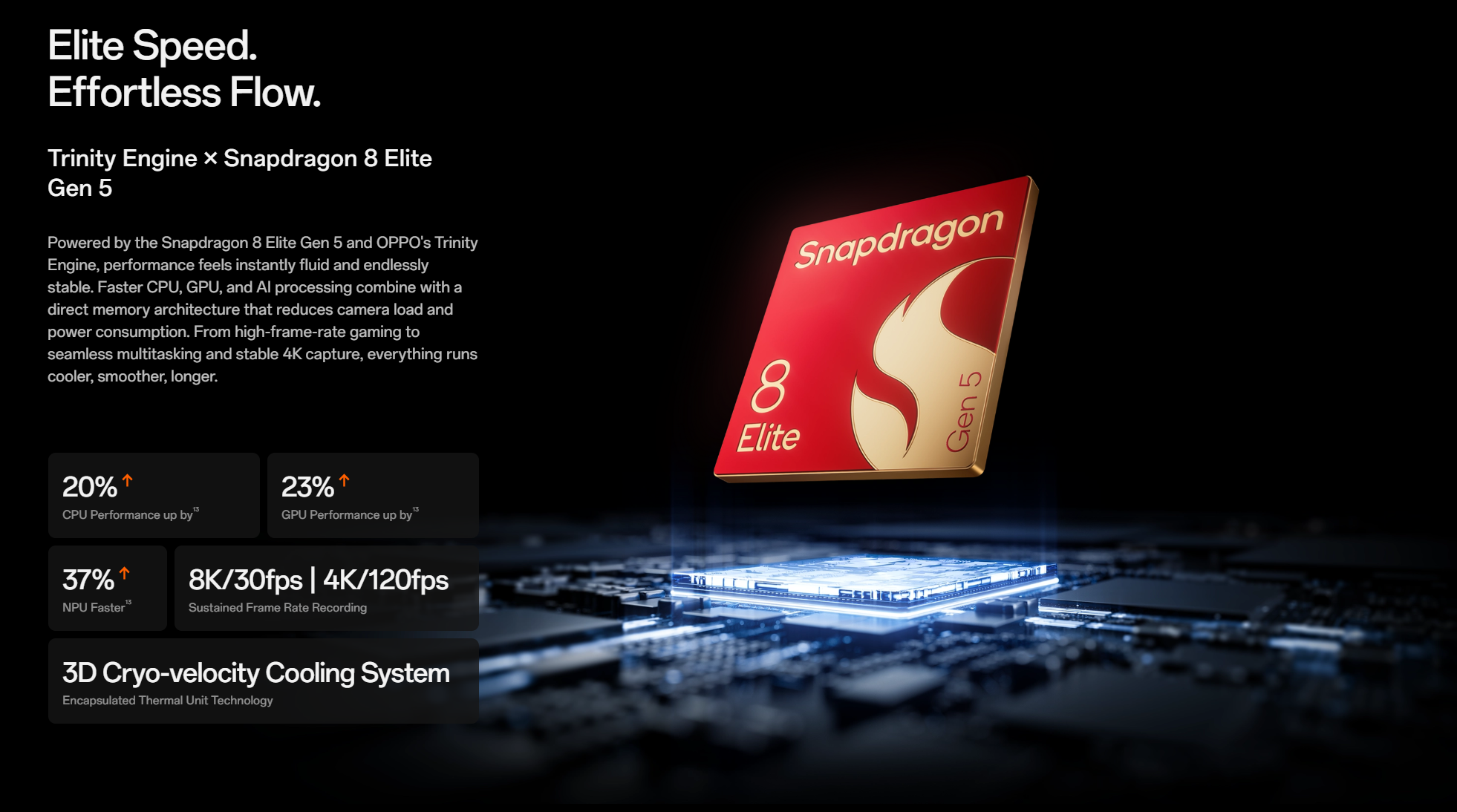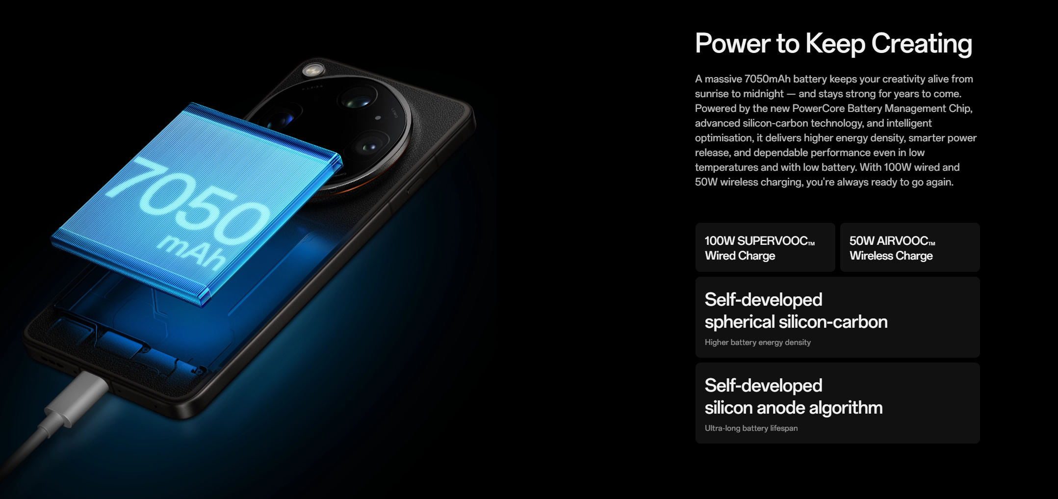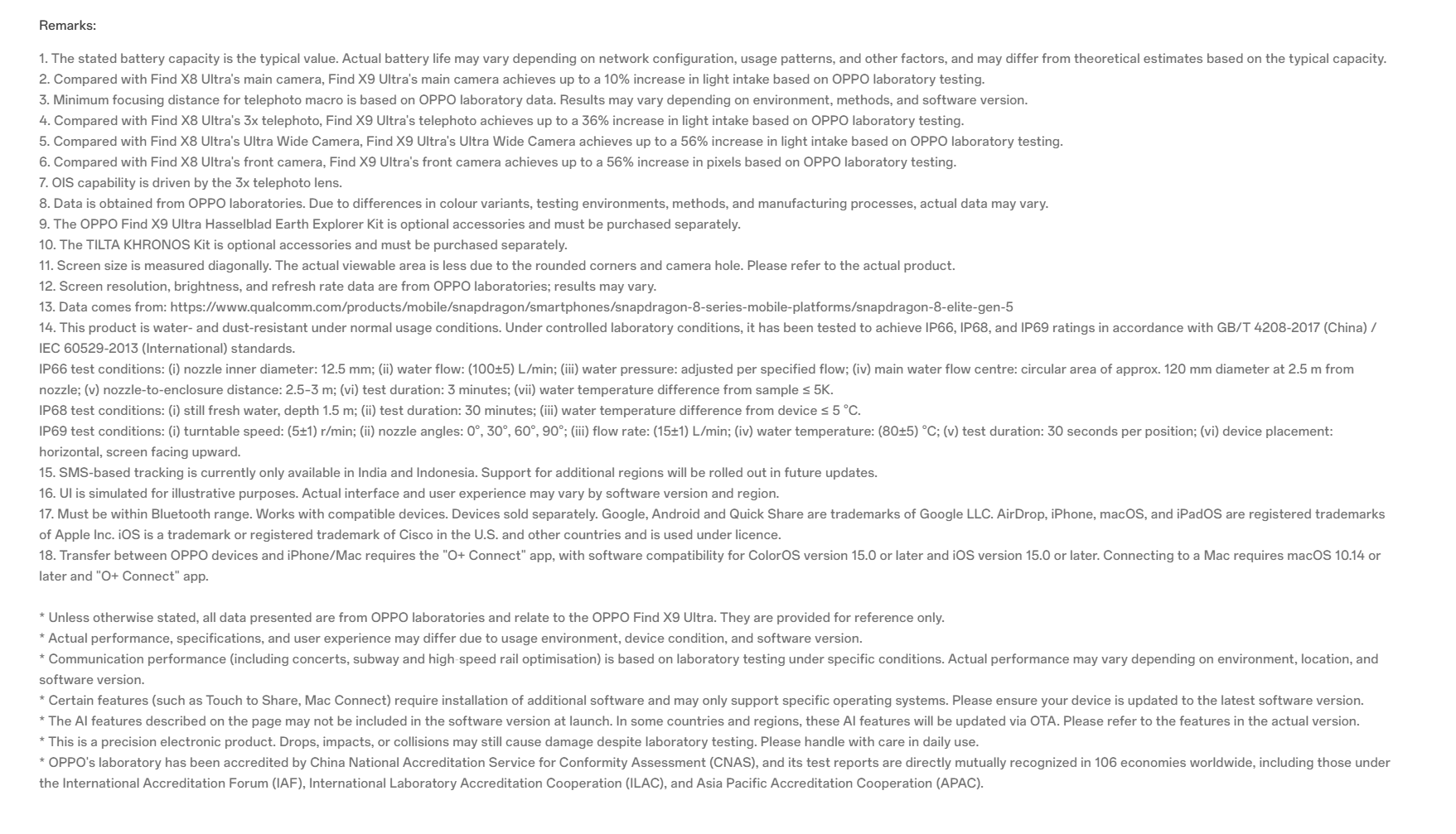 Processor: Snapdragon® 8 Elite Gen 5 Mobile Platform, 8-core, Adreno™ 840@1200MHzRAM + ROM: 12GB+512GB,16GB+1TBScreen: 6.82 inches, QHD+ 3168×1440 Pixels,Maximum 144Hz (144Hz only works in some game scenarios)OS: ColorOS 16.0Rear Camera: Ultra-wide angle:50MP; f/2.0; FOV 123°; 6P lens; AF supported Wide angle:200MP; f/1.5; FOV 84°; 7P lens; AF supported; Supports 2-axis OIS Telephoto:200MP; f/2.2; FOV 34°; Prism(OIS)+3P+3P(AF) lens; AF supported; Supports 2-axis OIS Ultra telephoto:50MP; f/3.5; FOV 11°; 1G3P+PRISM lens; AF supported; Supports 2-axis OIS Monochrome:3.2MP; f/2.4; FOV 95°; 3P lensFront Camera: 50MP; f/2.4; FOV 90°; 5P lens; AF supportedBattery: 7050 mAh/26.23 Wh(Typical), Supports(Max):100 W SUPERVOOC,Supports:50 W AIRVOOC Others:Bluetooth® 6.0, Low Energy,Under-screen fingerprint,Facial Recognition,NFC: Supported