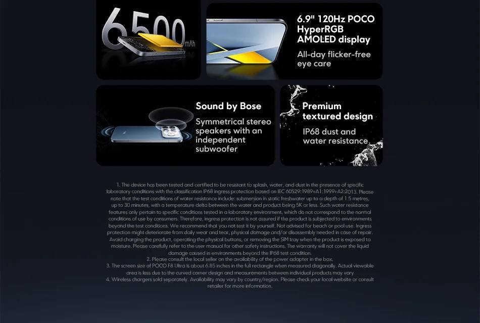 Global Version POCO F8 Ultra CPU -----------Snapdragon® 8 Elite Gen 5 Mobile Platform Screen -------- 6.9" 120Hz ultra-clear AMOLED display