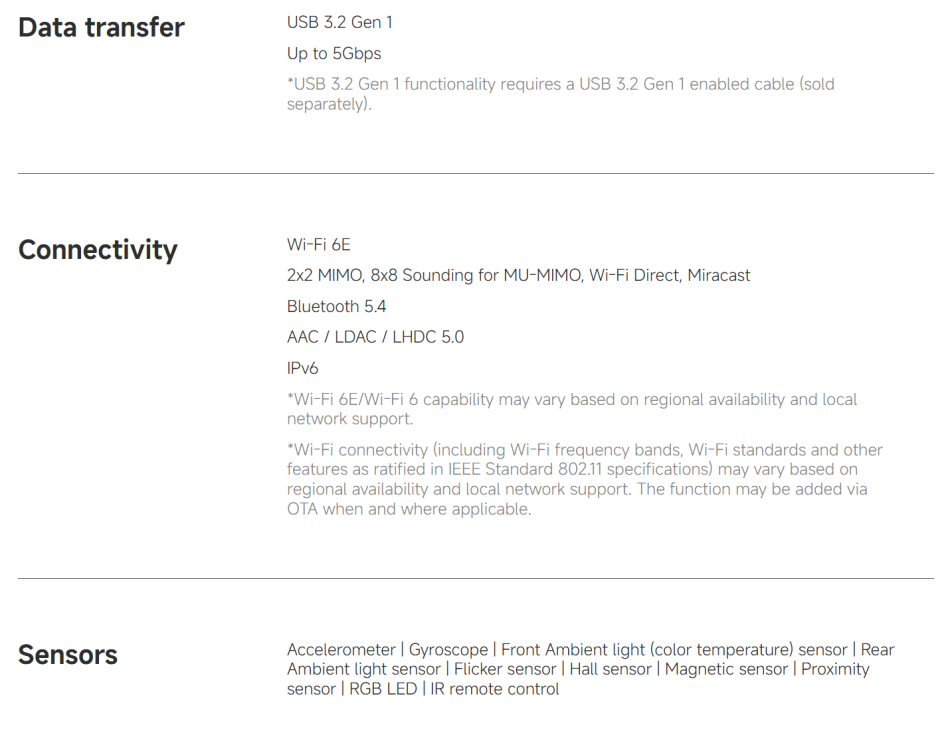 Other--------- Wi-Fi 6E, Bluetooth 5.4, Quad speakers, Dolby Vision and Dolby Atmos supported