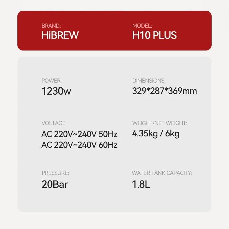 HiBREW H10plus Semi Automatic Espresso Coffee Machine DIY Function 20Bar Pressure Temperature Adjustable For Cappuccino & Latte