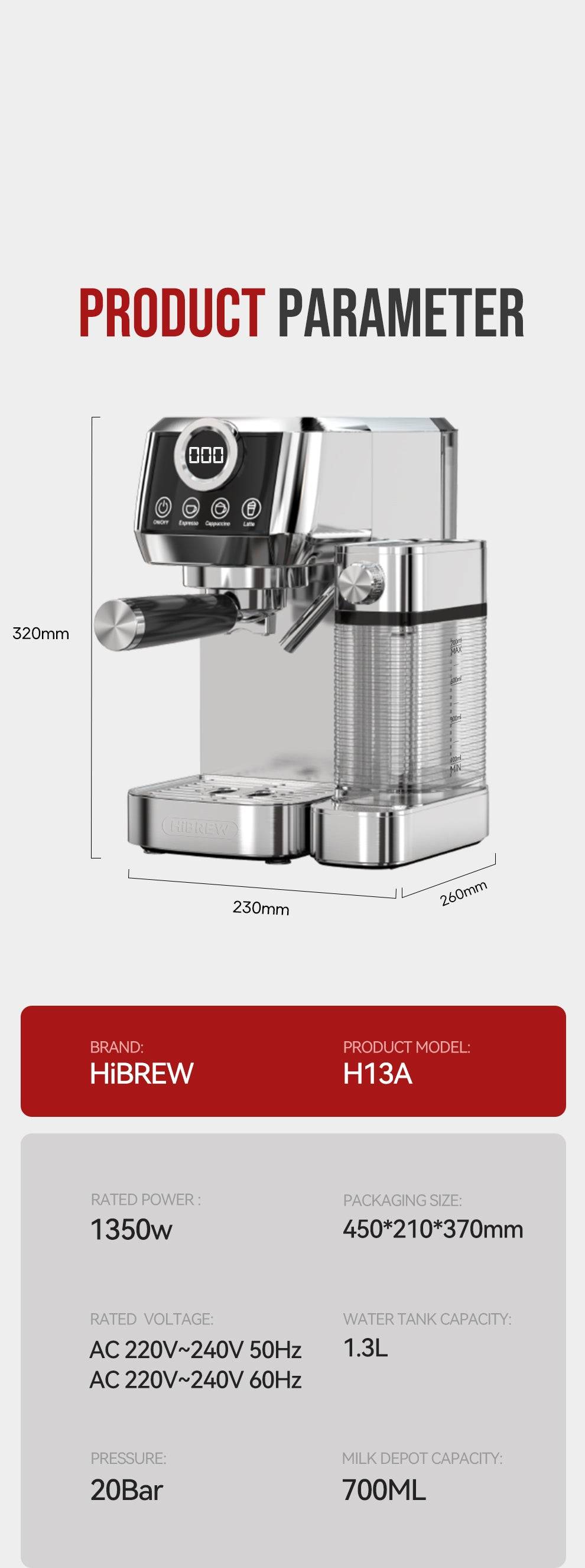 HiBREW Semi Automatic Coffee Machine Stainless Steels H13A + G5 48mm Conical Burr Electric Coffee Grinder Bundle (Preorder: Expected to ship after 8.27)