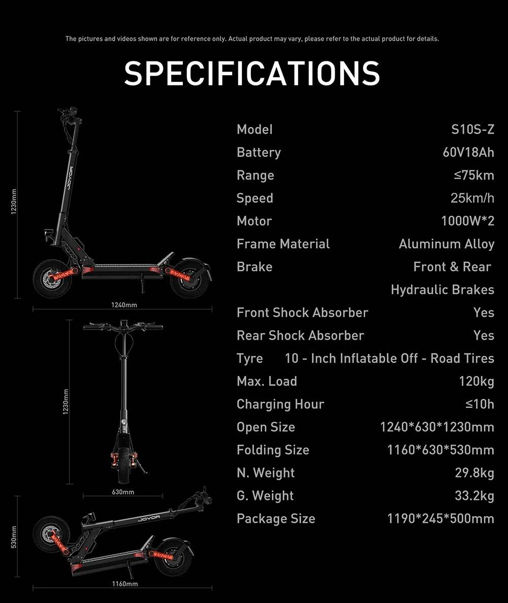 [EU DIRECT] Joyor S10-S-Z Electric Scooter 60V 18Ah 2000W Dual Motor, 10'' Off-Road Tires, 70–85KM Range, 120KG Load, Hydraulic Disc Brakes, Smart LED Display (Updated S10-S)