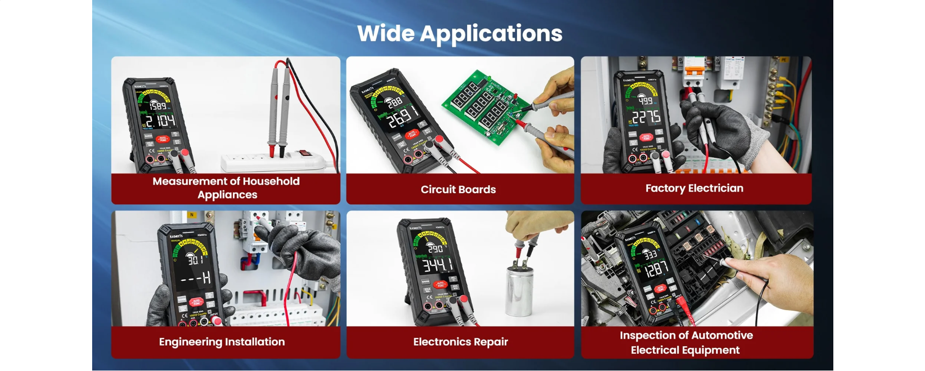 The smart digital multimeter is suitable for diagnosing automotive, industrial, and household electrical problems.