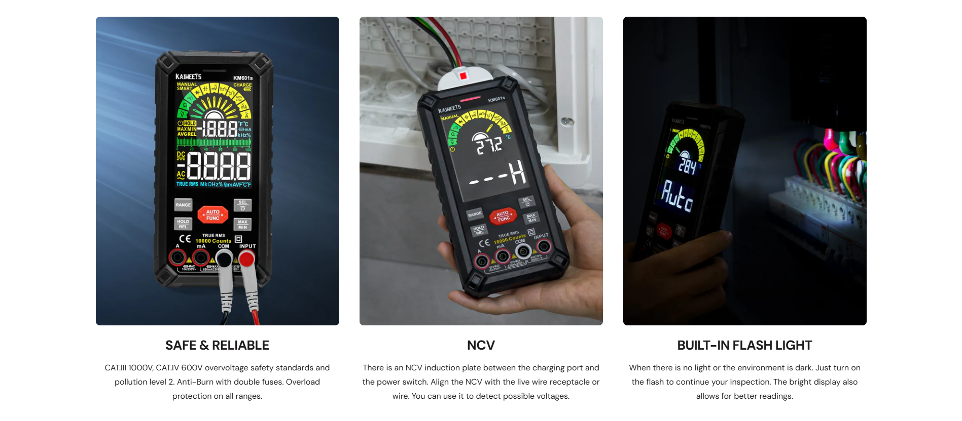 This smart multimeter is manufactured to meet the IEC rating CAT.III 1000V, CAT.IV 600V. It has obtained