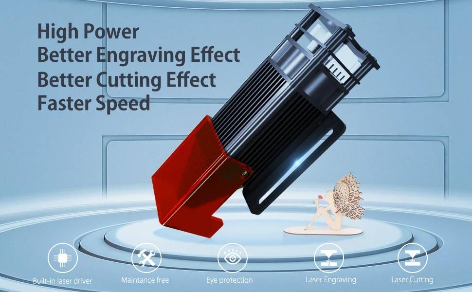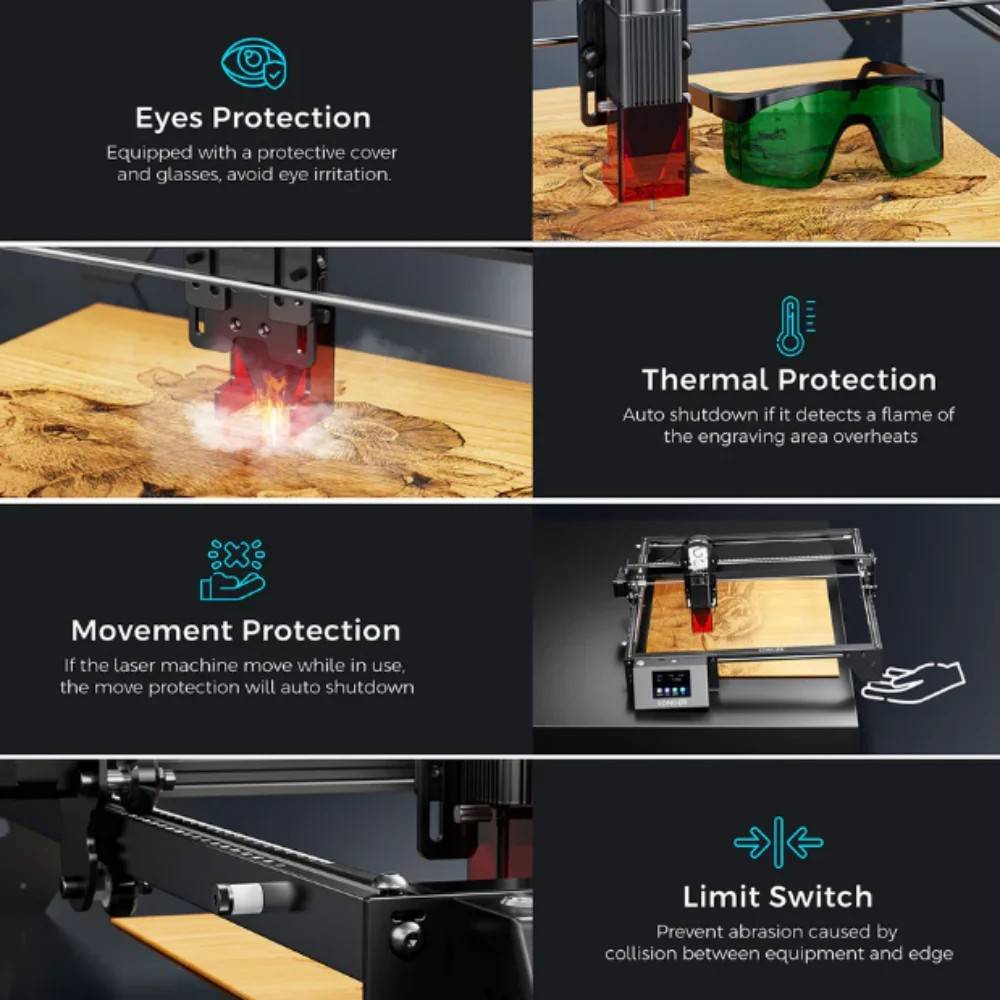 - Quick Focus & Precisely Spot on - The focusing system is comprised of a fixed-focus lens and a focusing facilitator. Slide down the facilitator for fast focusing and uplift it once the focusing is finished. Preview function for quick and accurate engraving area location and continuous blue light emissions from the laser head will indicate the engraving area.