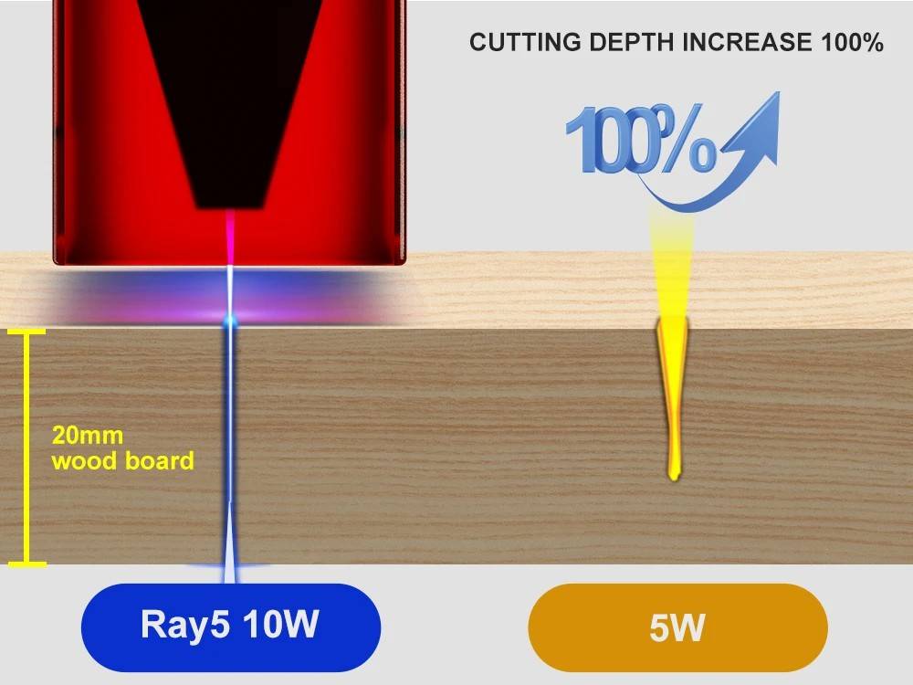 10W's cutting ablity is stronger than 5w, which can cut wood up to 20mm, acrylic 30mm.