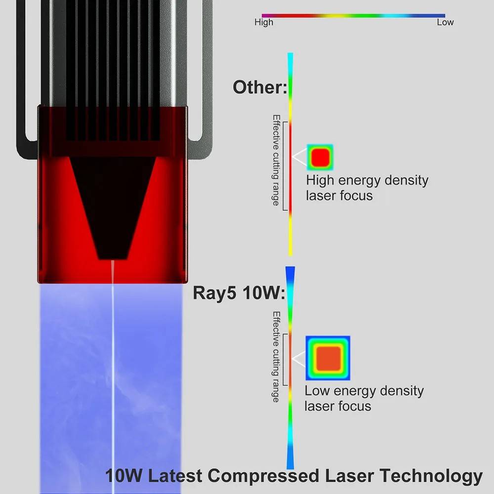 The 10W laser head adopts compressed double beam technology: