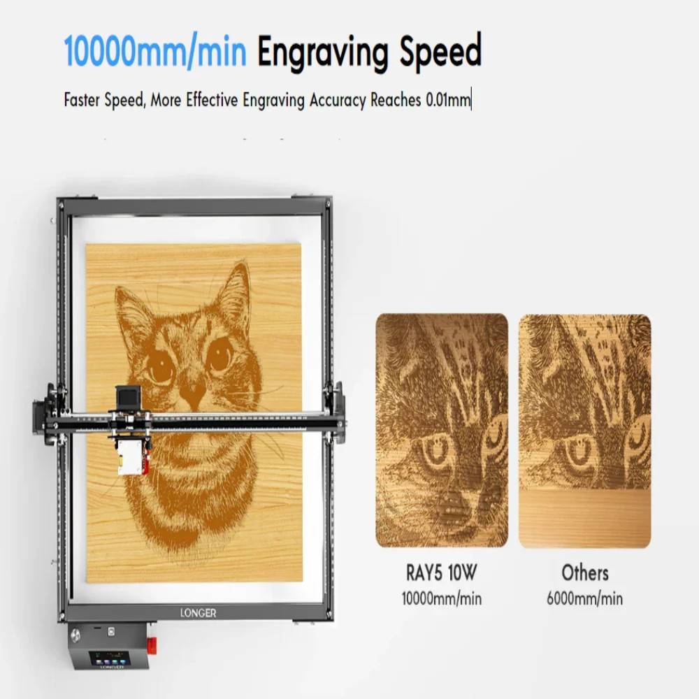 LONGER RAY5 10W Laser Engraver 0.06x0.06mm Laser Spot Touch Screen Offline Carving 32-Bit Chipset Working Area 400x400mm