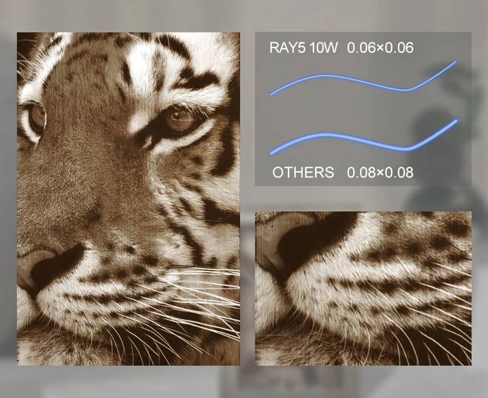 The Ray5 10w can work parallelly with control of only one terminal, you can set a number of units engraving and cutting together and improve the production efficiency.