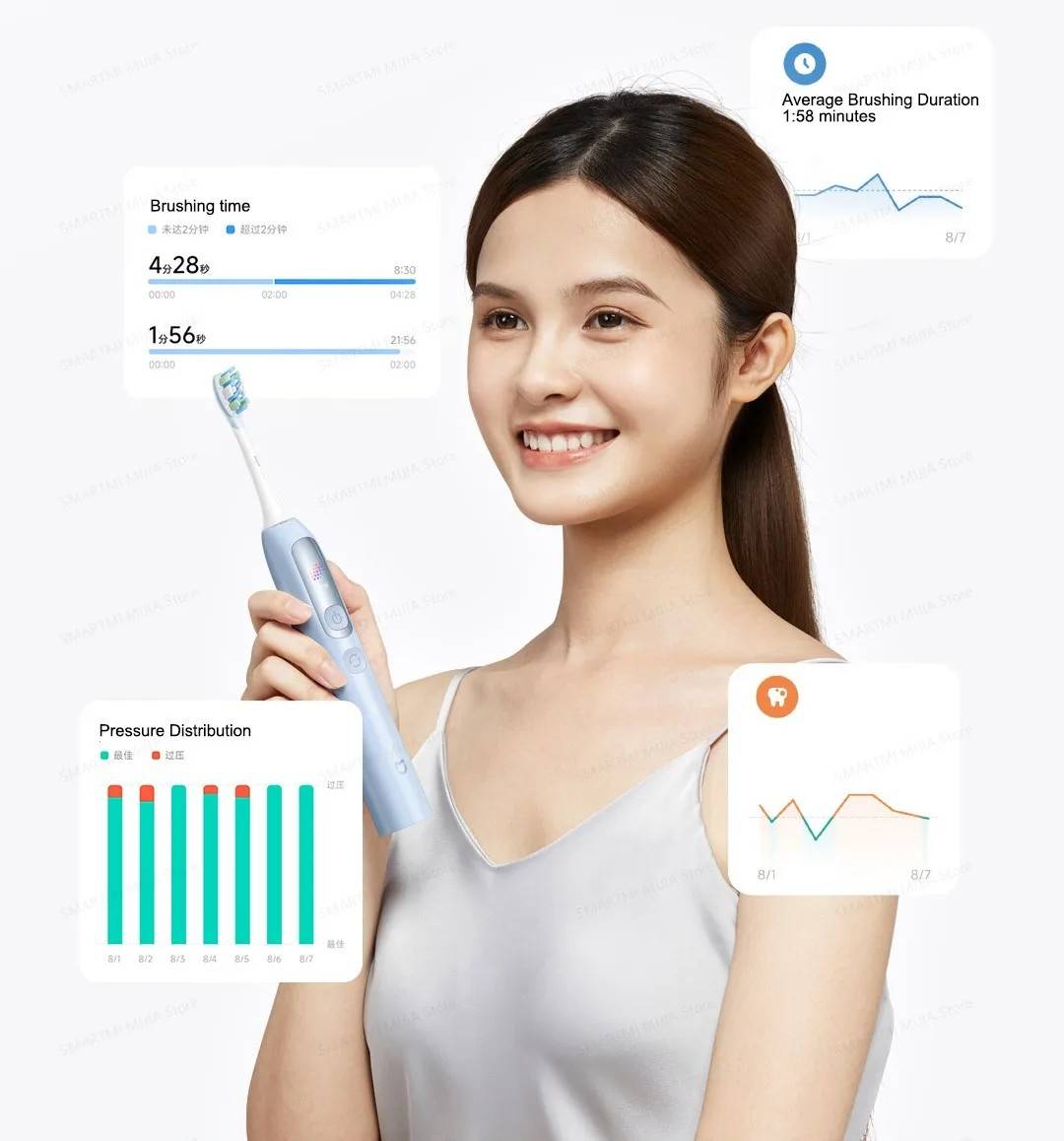 Through the Mi Home app, you can access detailed brushing reports, including information on brushing duration, pressure distribution, and potential gum risks.