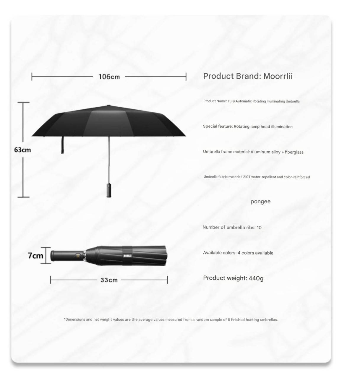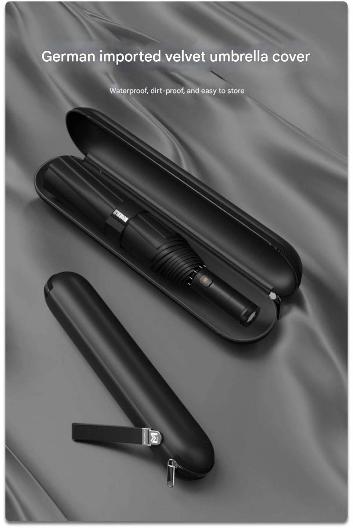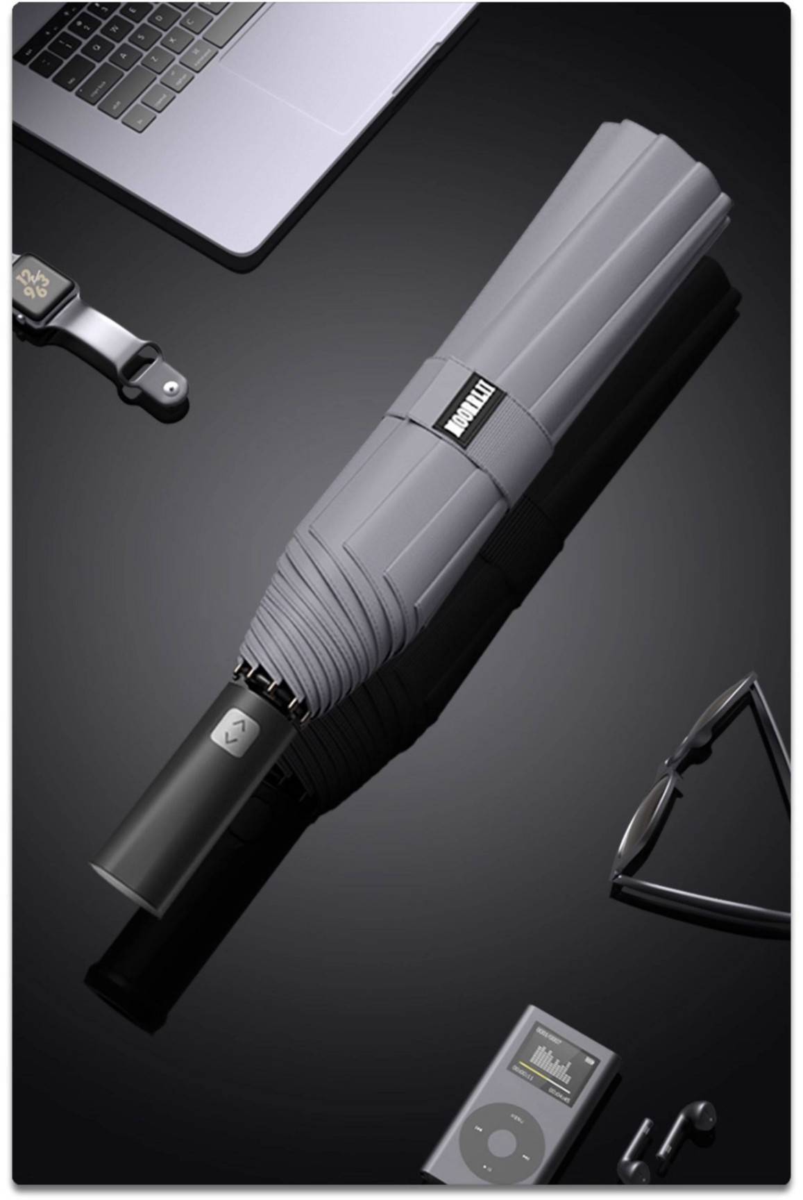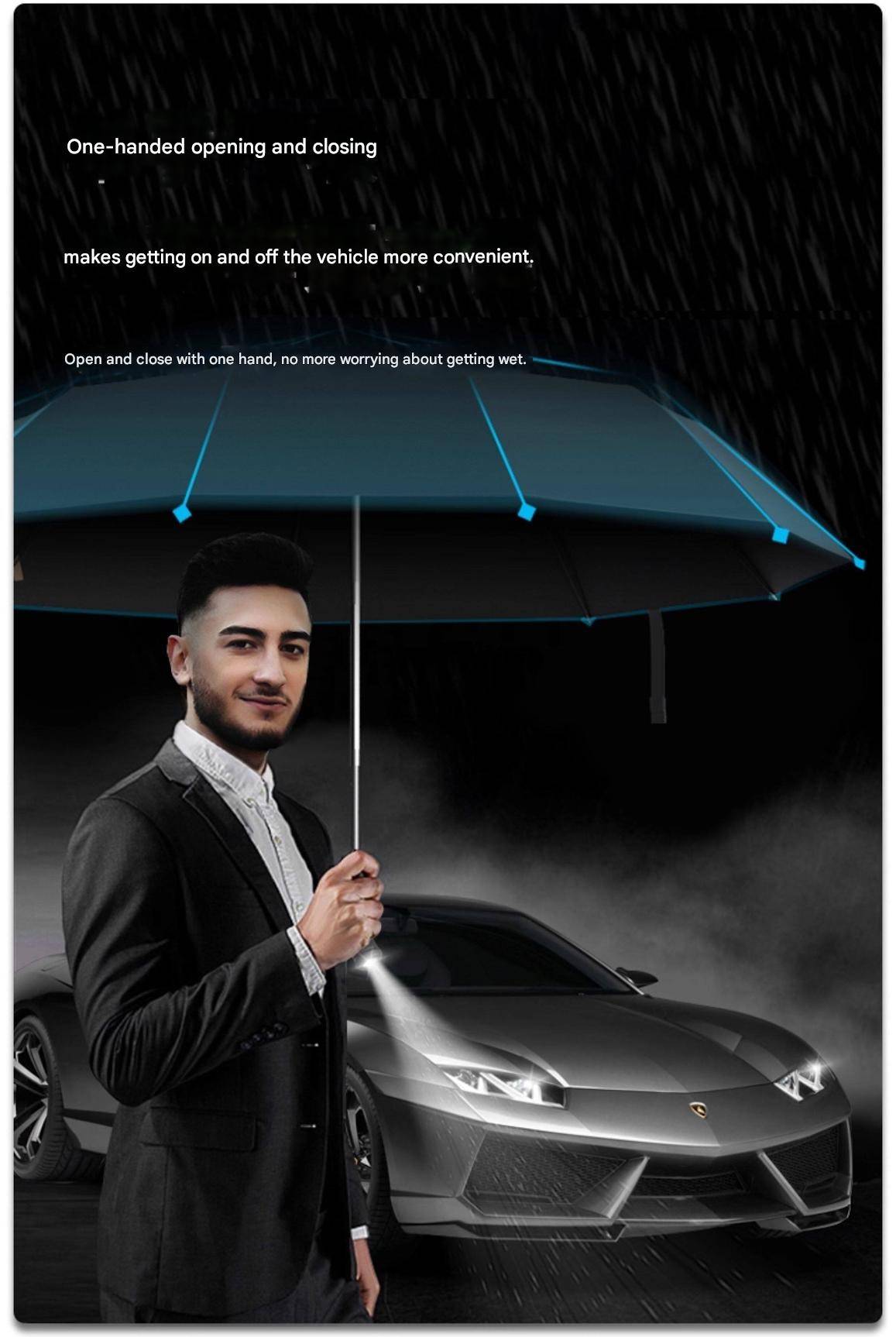 MOORRLII Fully Automatic LED Rotating Light Automatic Folding Umbrella, Sturdy, Thickened, Wind-Resistant, Reinforced Automatic Umbrella