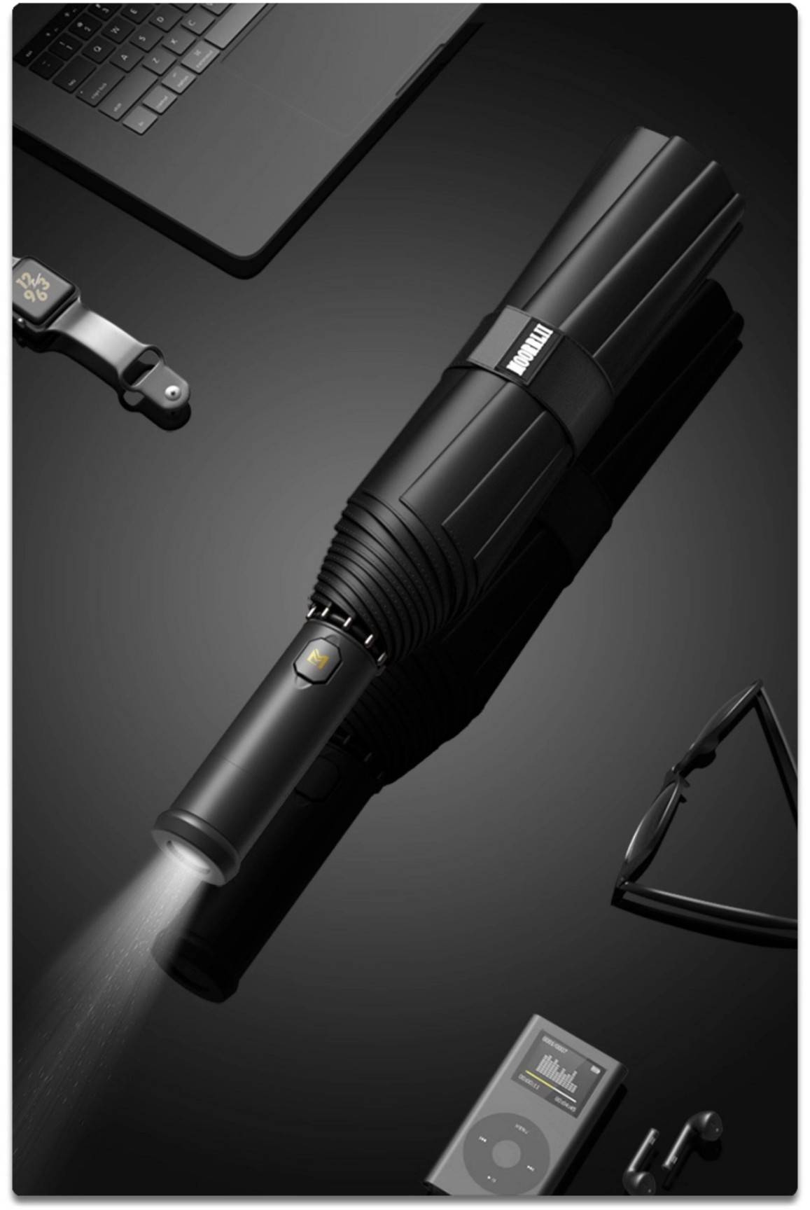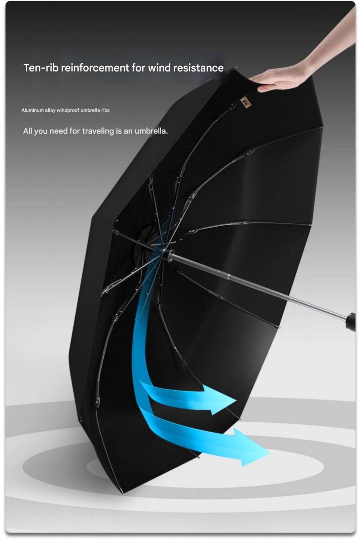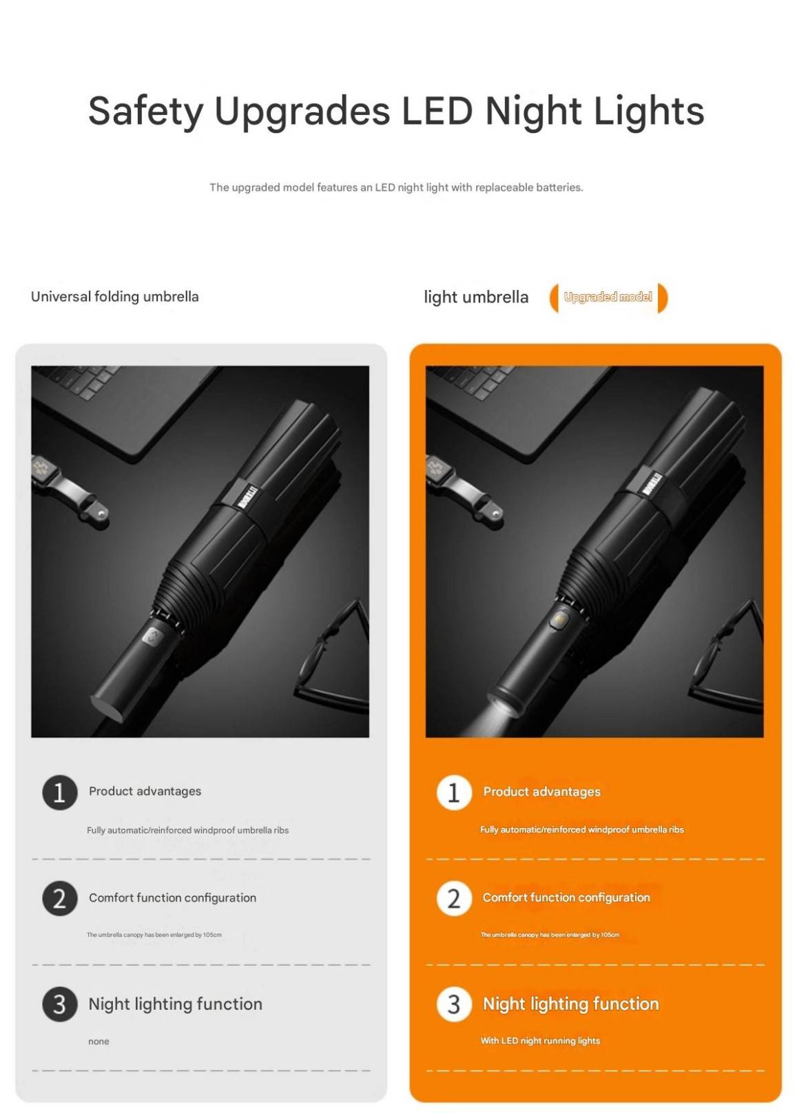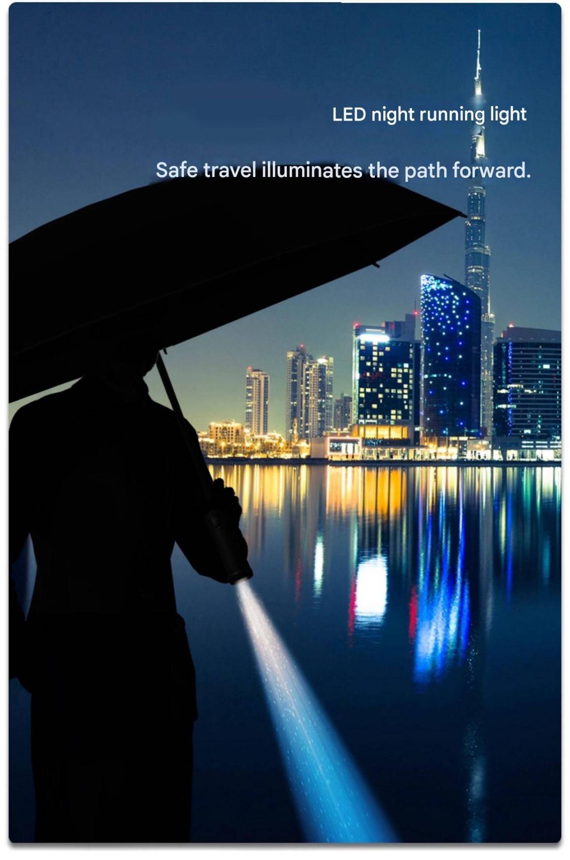 MOORRLII Fully Automatic LED Rotating Light Automatic Folding Umbrella, Sturdy, Thickened, Wind-Resistant, Reinforced Automatic Umbrella