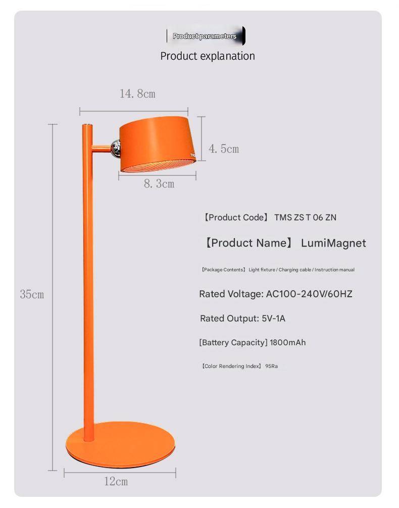 Multifunctional magnetic wall-mounted student dormitory bedside reading lamp desk study rechargeable table lamp without drilling