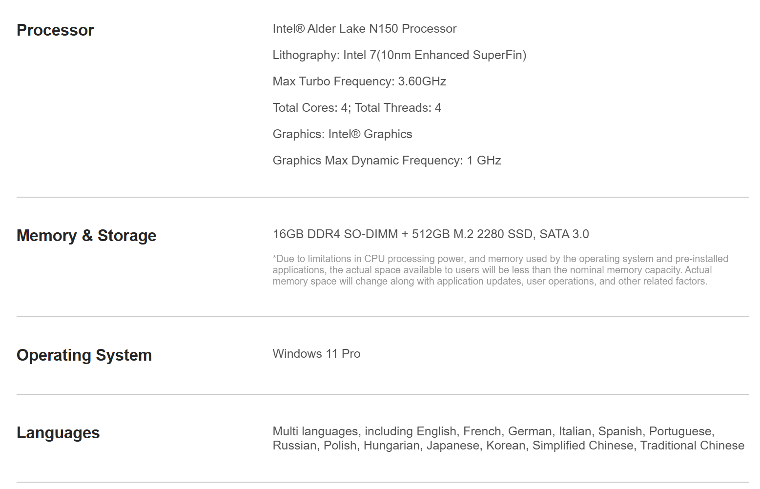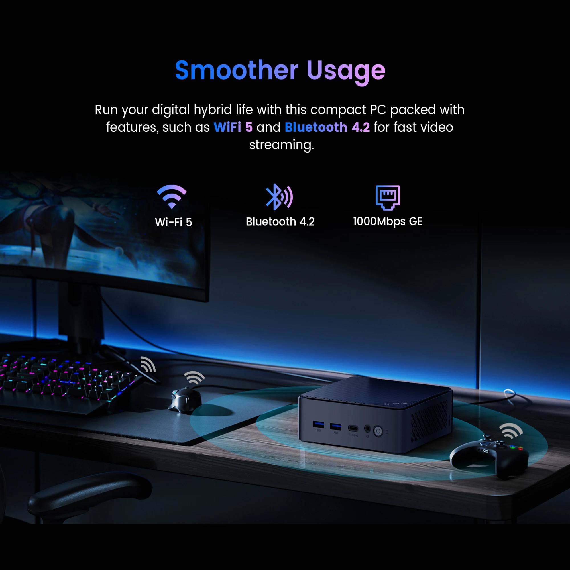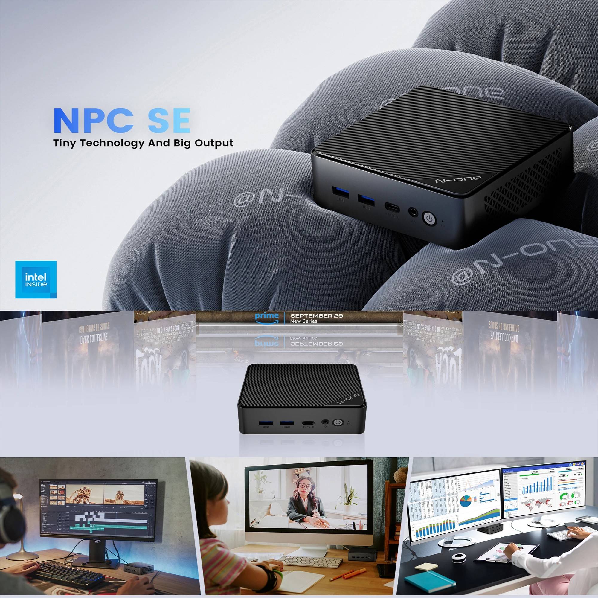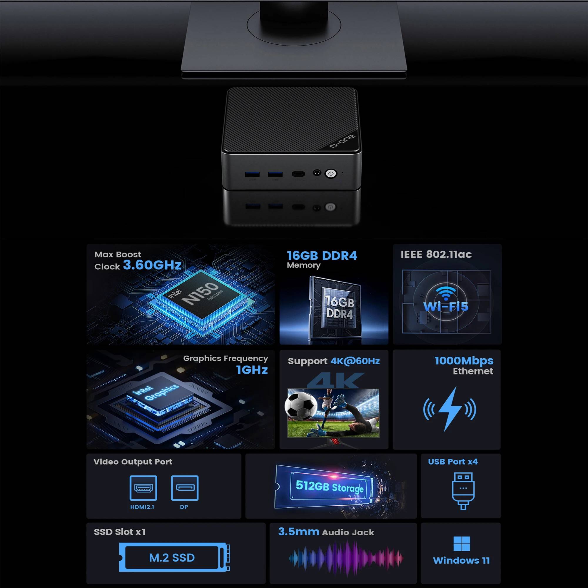 N-one NPC SE Mini PC Intel® Twin Lake N150 Windows 11 Pro Mini Desktop PC 16GB DDR4 512GB SSD Wi-Fi 5 BT4.2