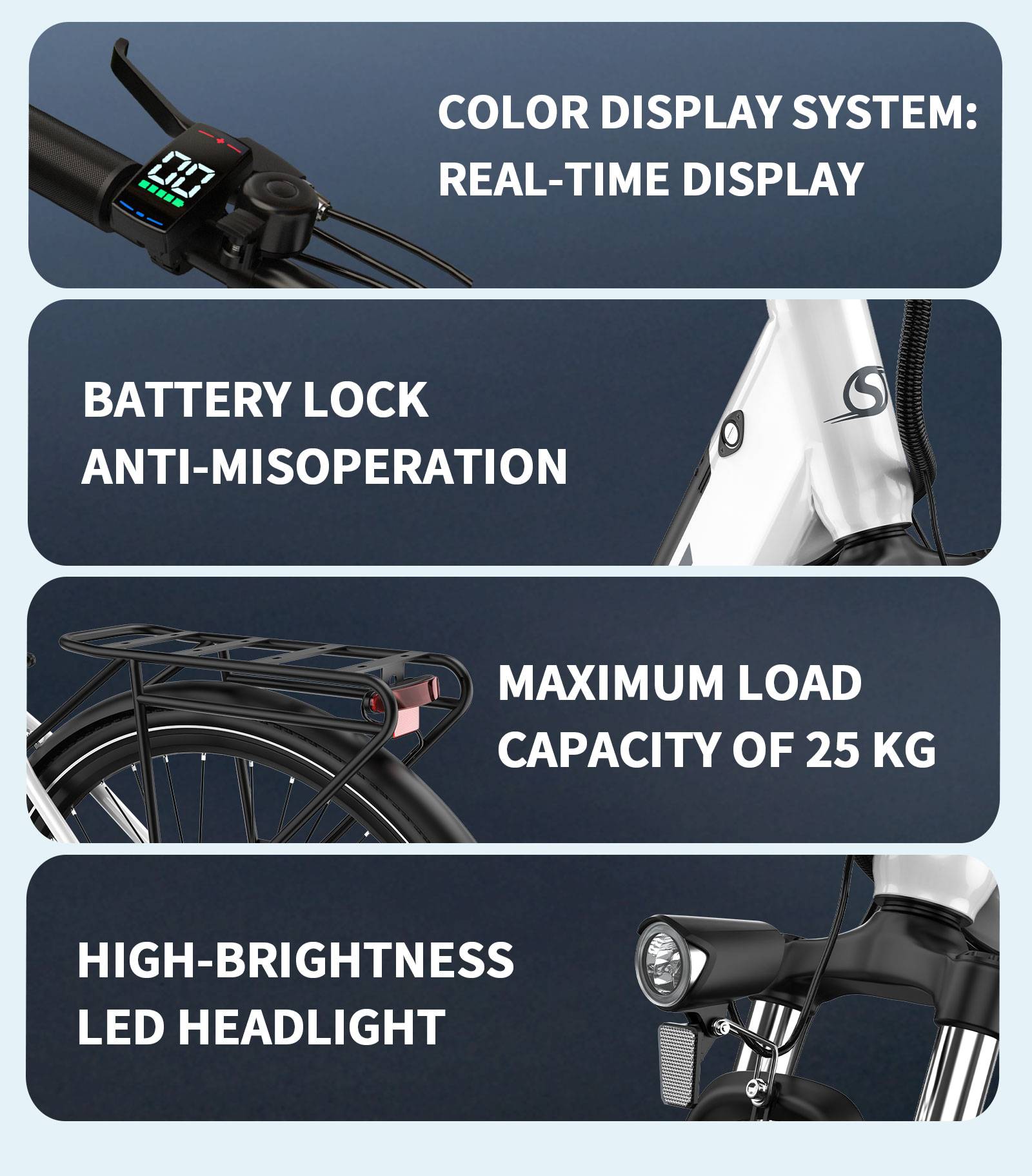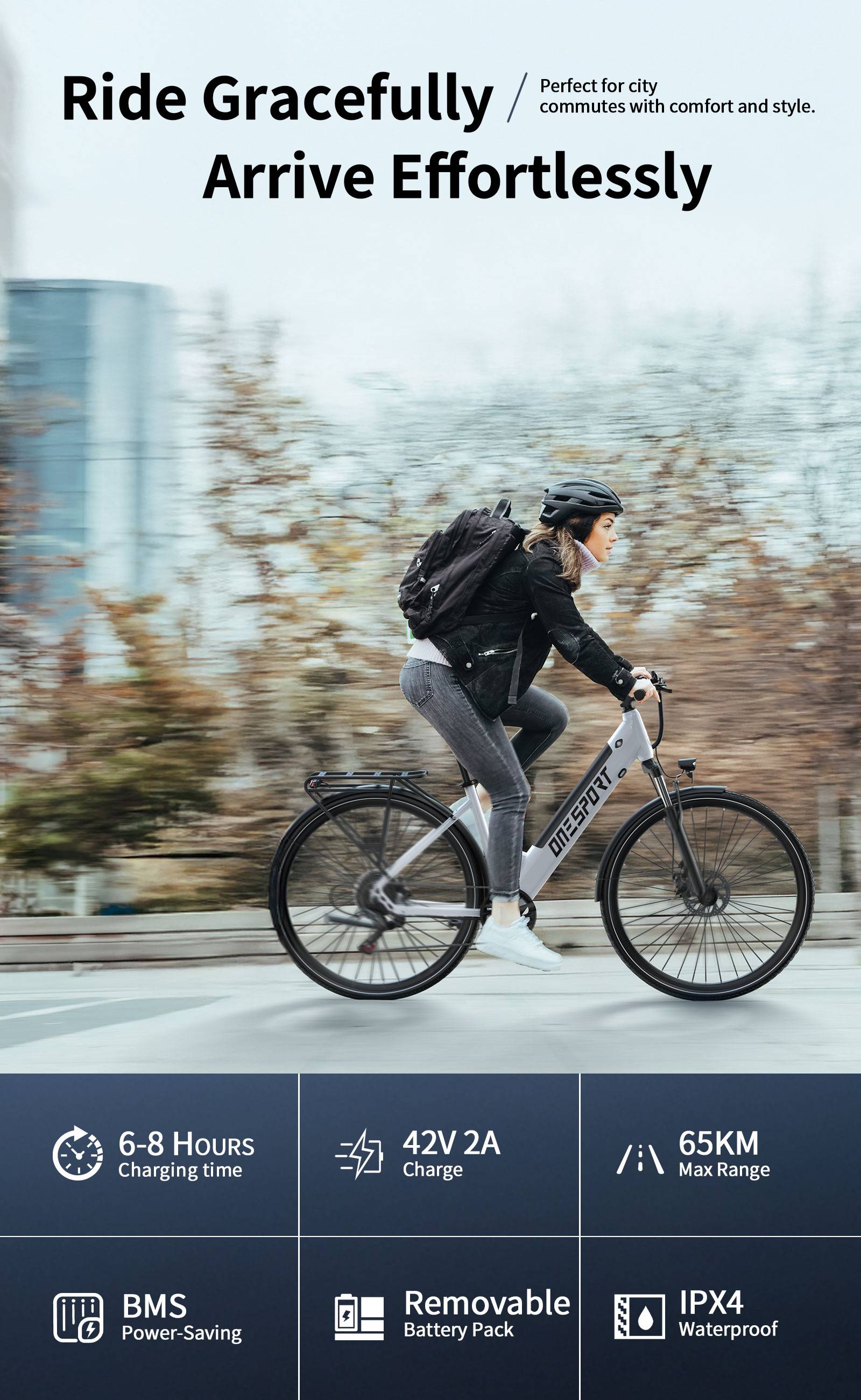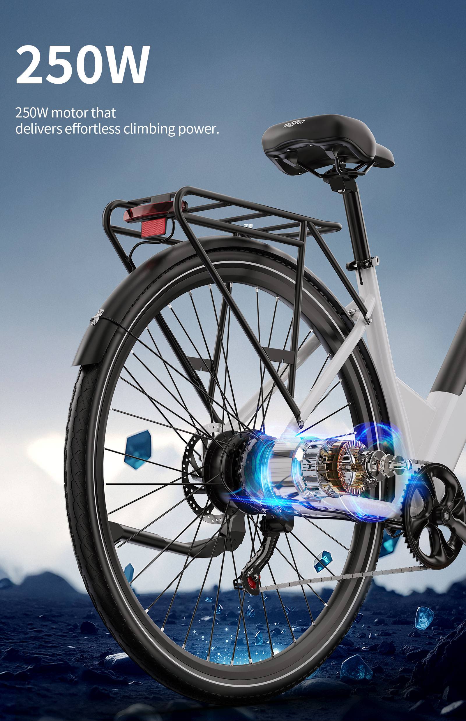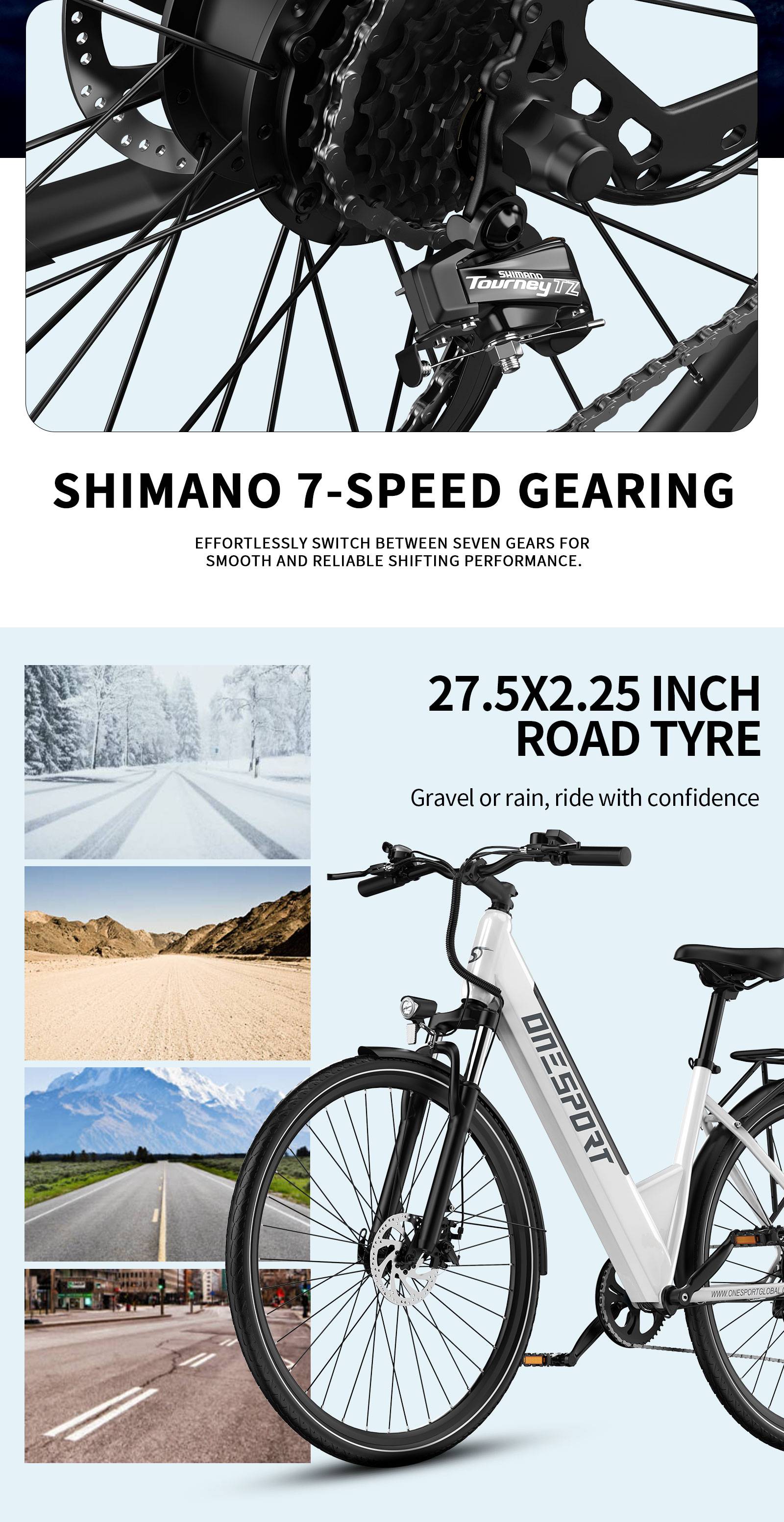 ONESPORT OT12 Electric Bike 250W Motor 36V 13Ah Battery 27.5 Inch Tire 25km/h Max Speed 65km Range Front Rear Mechanical Disc Brakes Front Suspension Fork Shimano 7 Speed Electric Bicycle