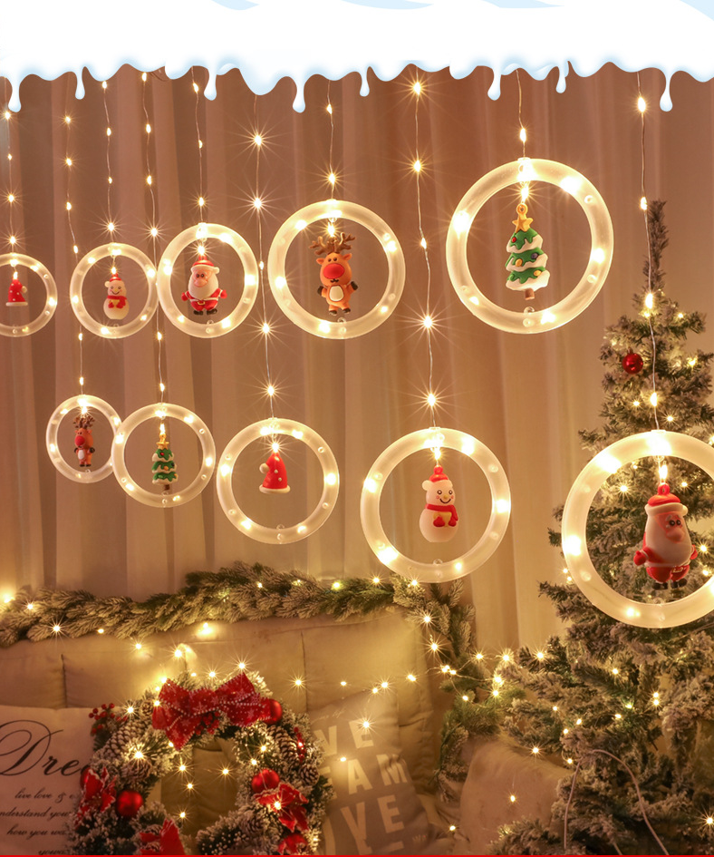 New Christmas decoration LED light string ring leather cord curtain light Christmas tree pendant atmosphere color  Light ice strip light