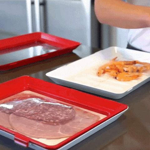 Whether you want to preserve fruits, meat, vegetables, sausages, cheese, pizza, fish or you want to keep fresh your pastries , these creative trays are the best solution for you. These vacuum storage trays will keep your food well preserved.