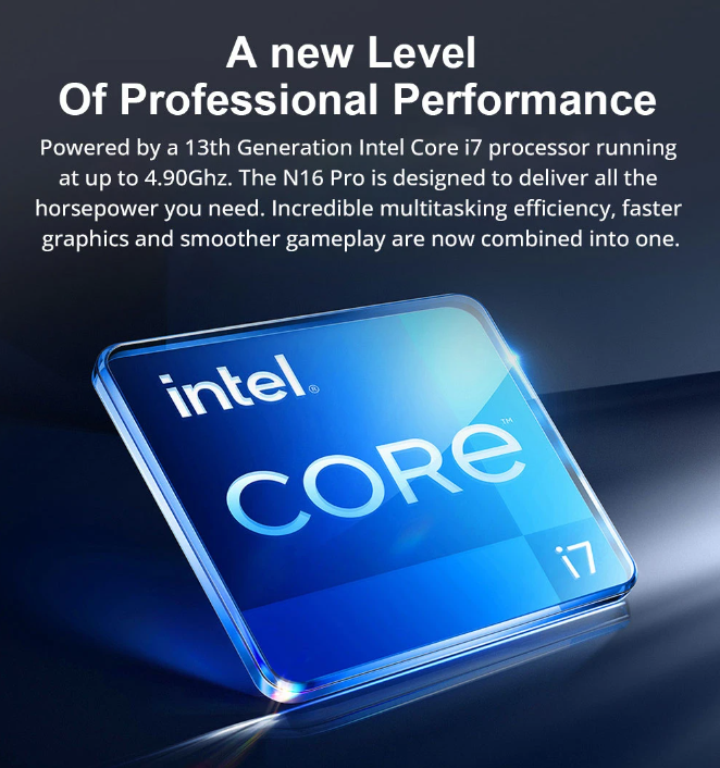 Highlights Intel Core i7-13620H CPU The N16 Pro laptop is equipped with Intel's 13th generation Core i7-13620H processor with a maximum frequency of 4.9GHz. It can easily run various office software and some games.