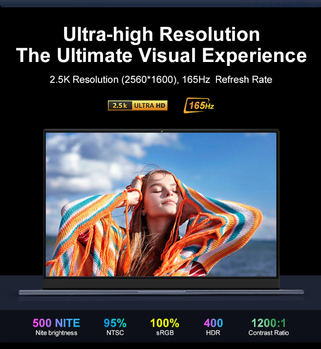 16" IPS Screen The N16 Pro comes with a 16" IPS matte screen that prevents glare, with a resolution of up to 2.5K, a refresh rate of up to 165Hz and HDR support.
